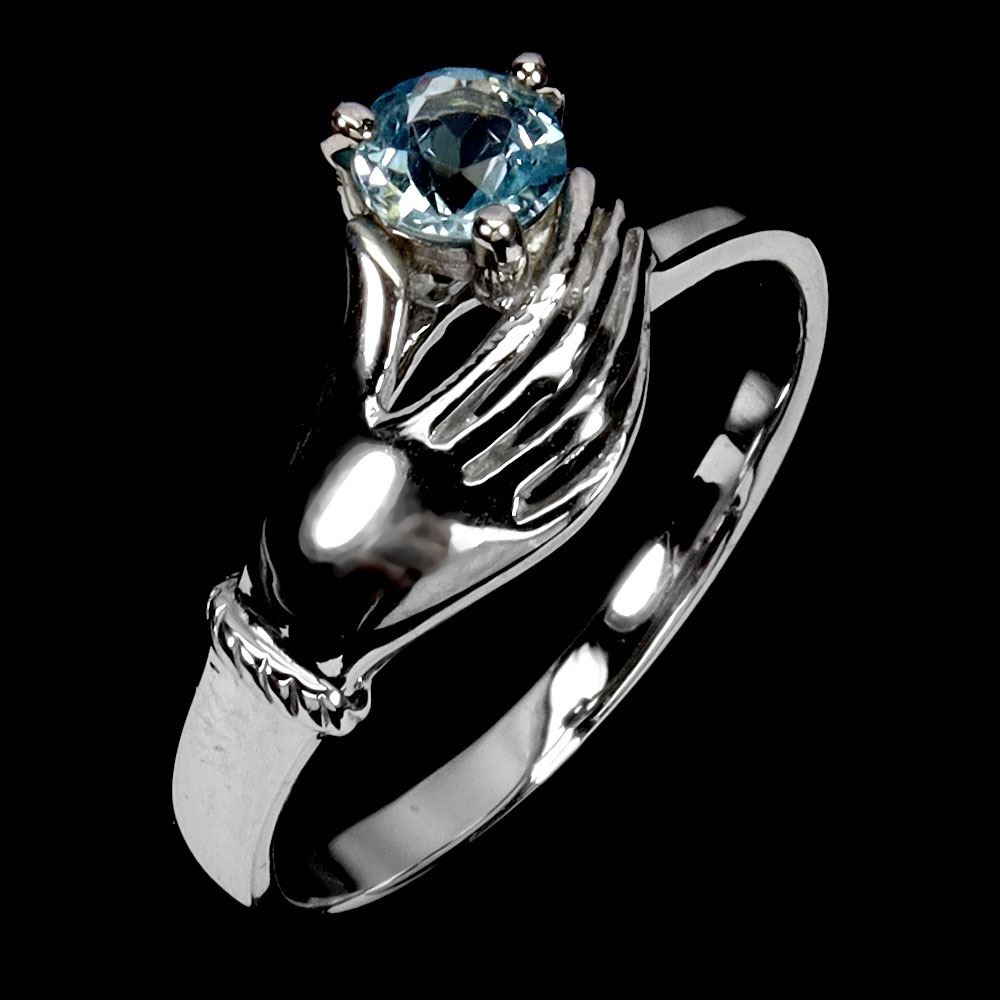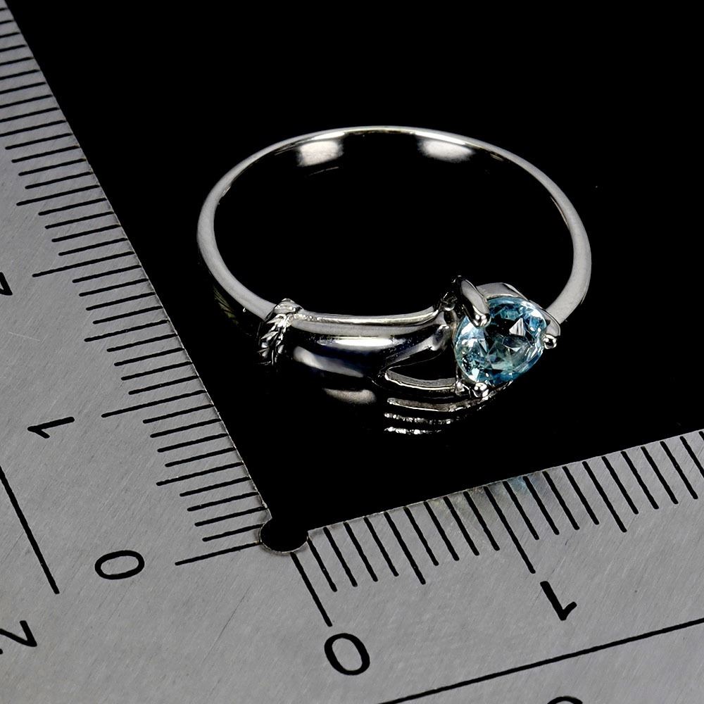 HAND SHEPD RING WITH ROUND CUT SKY BLUE TOPAZ IN 14K WHITE PLATED GOLD OVER 925 STERLING SILVER - SIZE 7 - APPRAISED REPLACEMENT VALUE