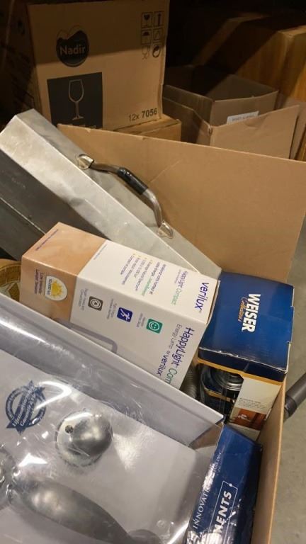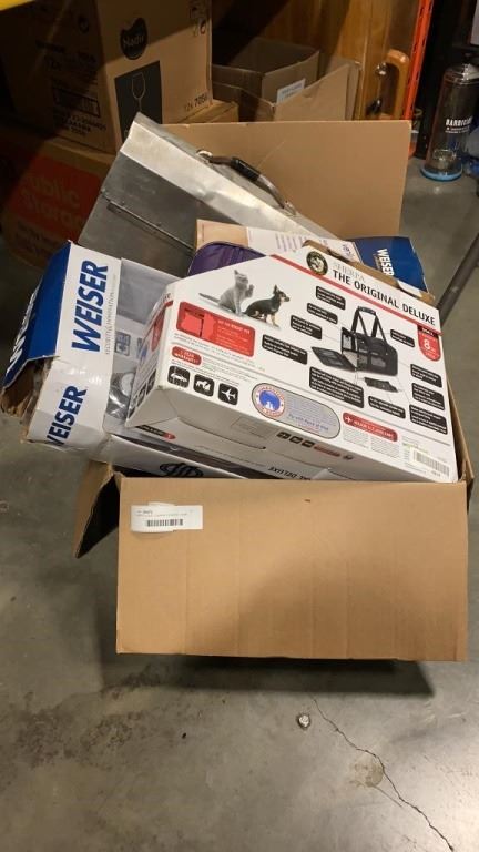 HAPPY LIGHT COMPACT ENERGY LAMP, SHERPA PET CARRIER, WEISER LOCK AND KNOB SET, ALLADIN LUNCH BOX, WASHER HOSE