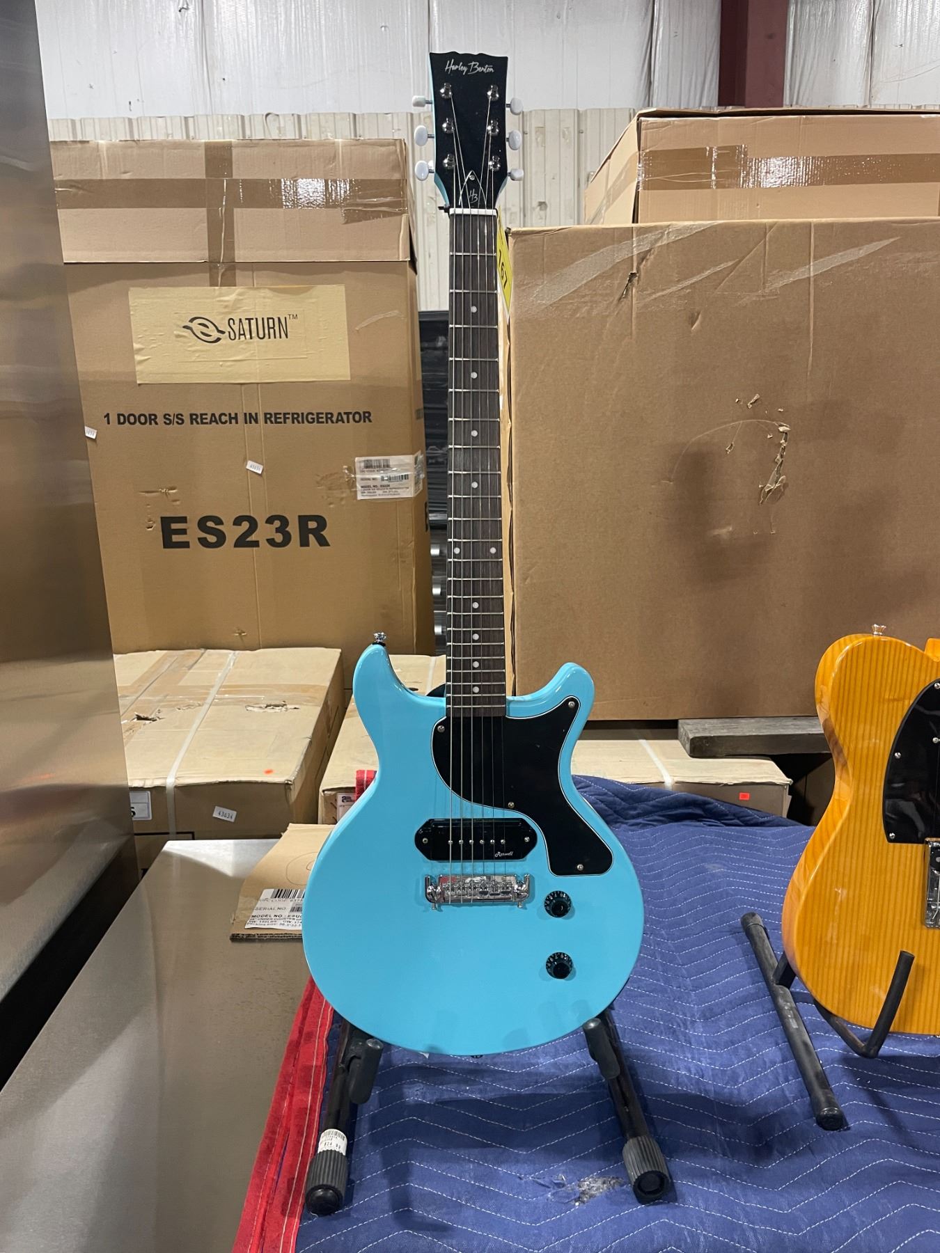 HARLEY BENTON ROSWELL SERIES BLUE WOOD BODY 6 STRING ELECTRIC GUITAR WITH WALNUT NECK