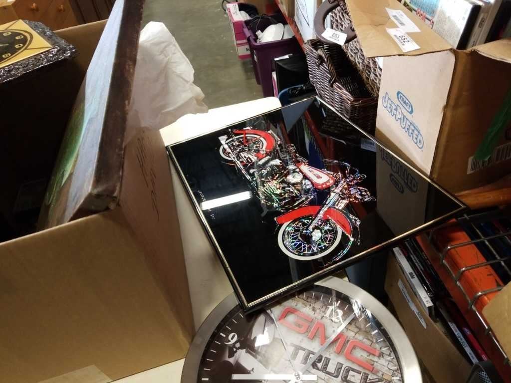 HARLEY DAVIDSON MIRROED ADVERT, COLLECTIBLES, AND CLOCKS
