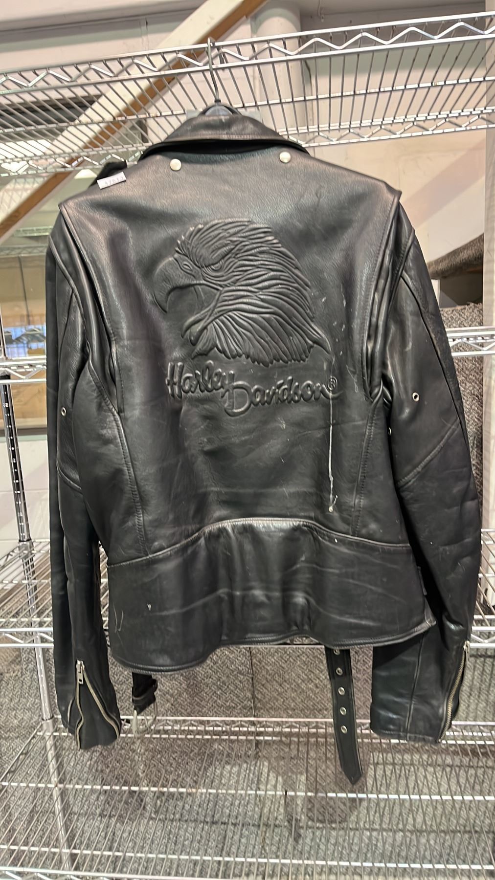 HARLEY DAVISON BLACK LEATHER JACKET - SIZE 48 TALL