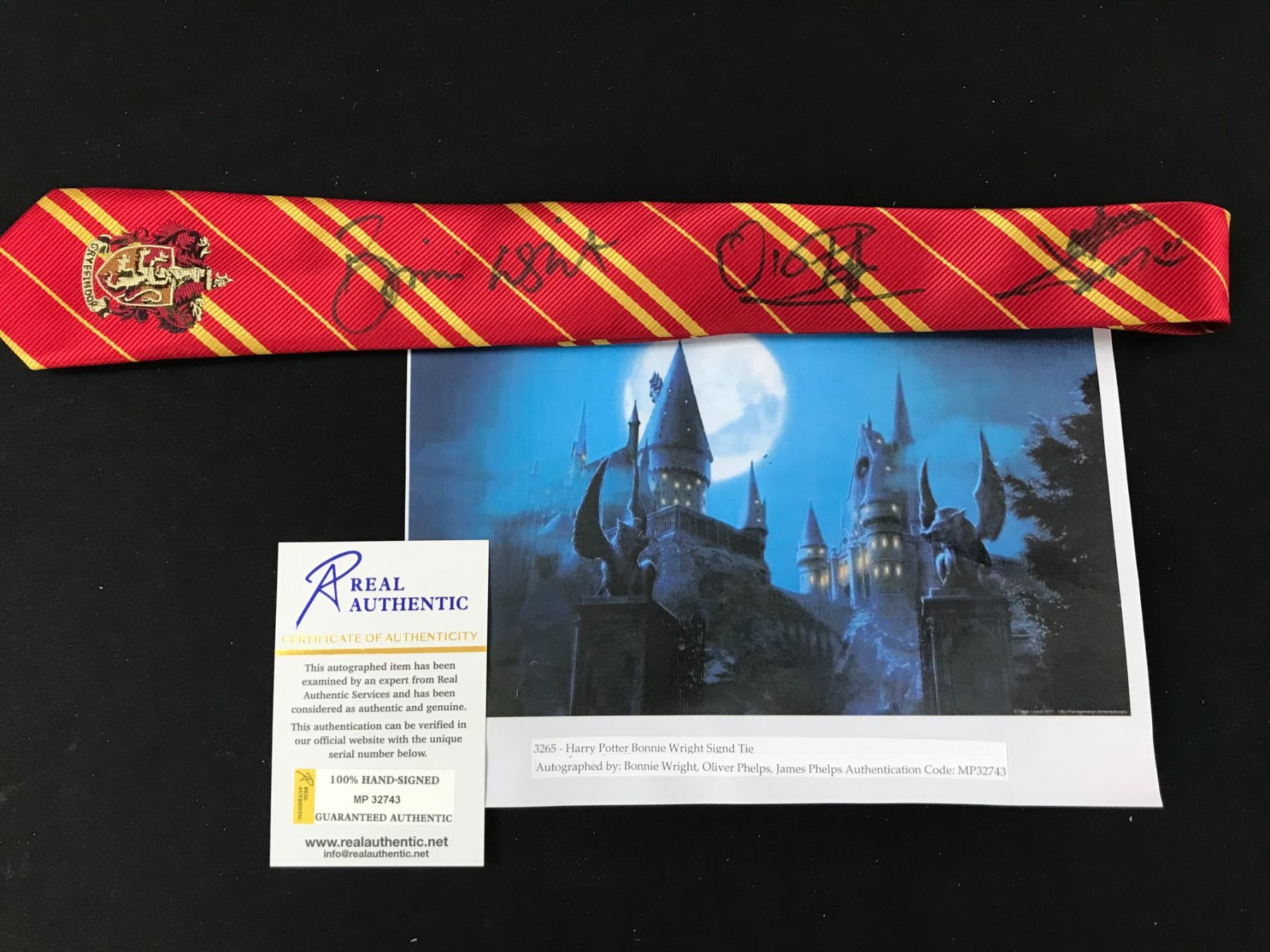HARRY POTTER SIGNED NECK TIE (PHELPS/WRIGHT) RA COA
