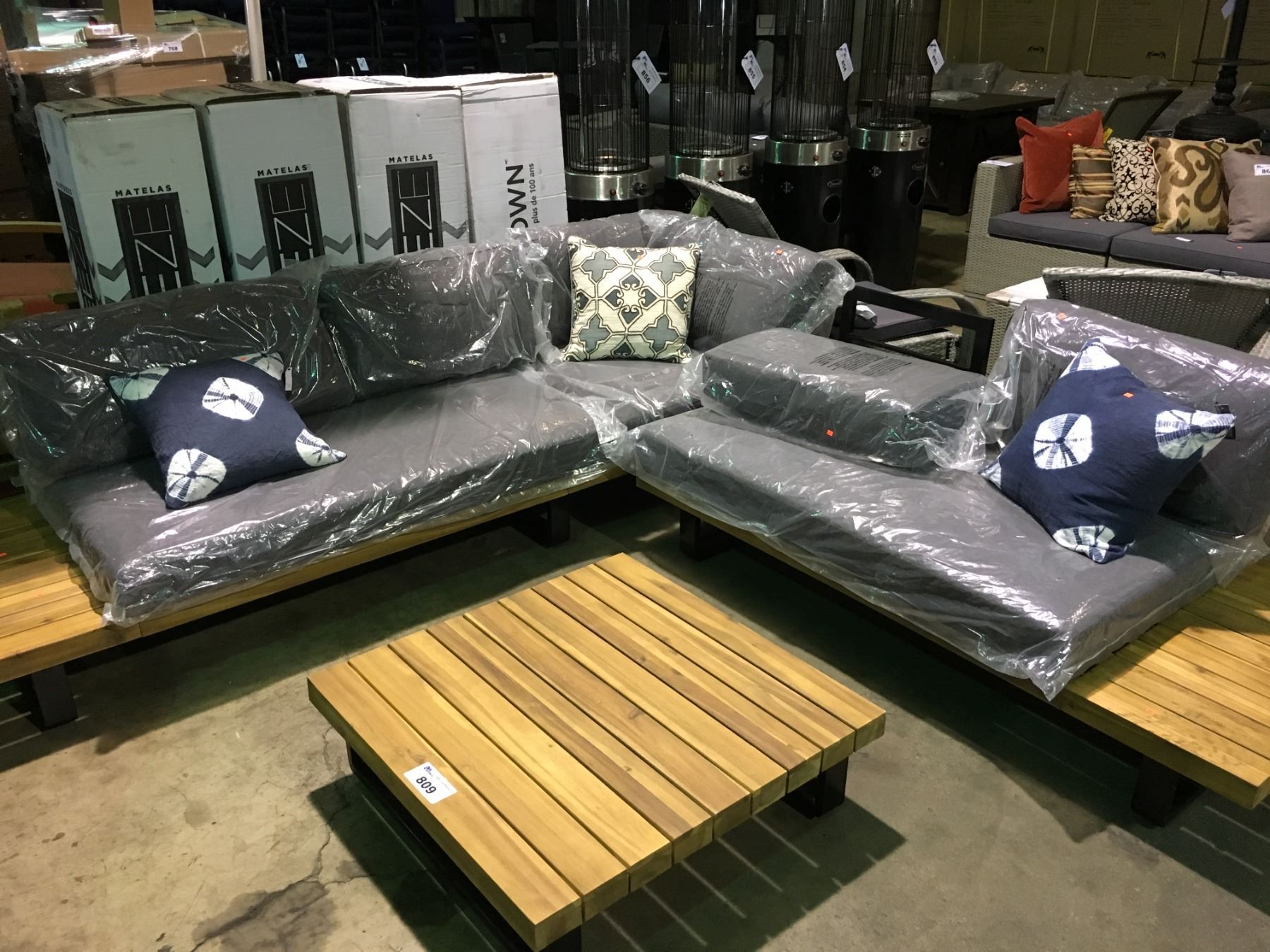 HAVEN PF-CS353-GY 3 PIECE TEAK & METAL OUTDOOR PATIO SECTIONAL WITH COCKTAIL TABLE
