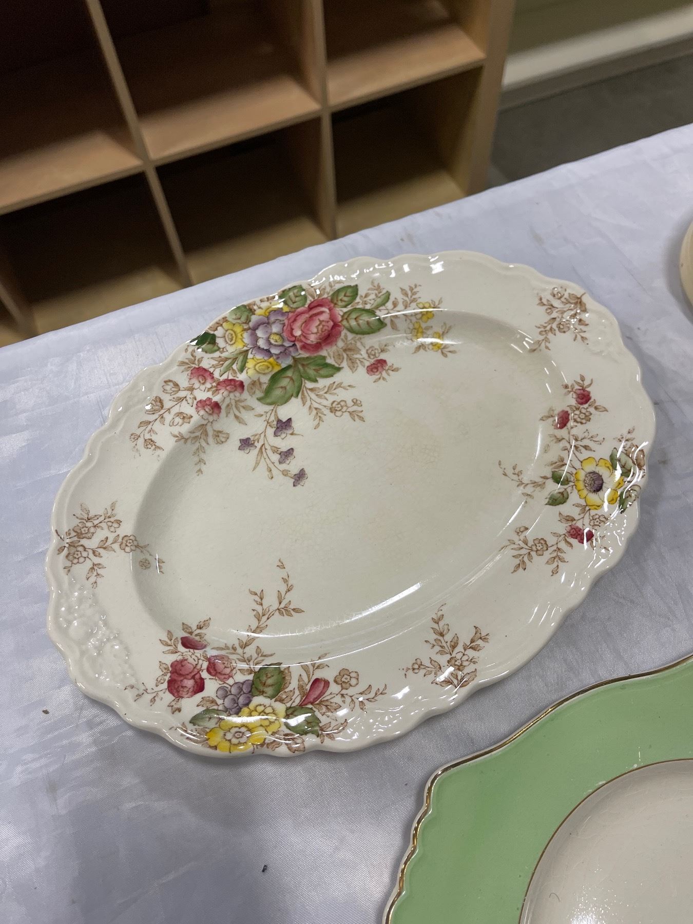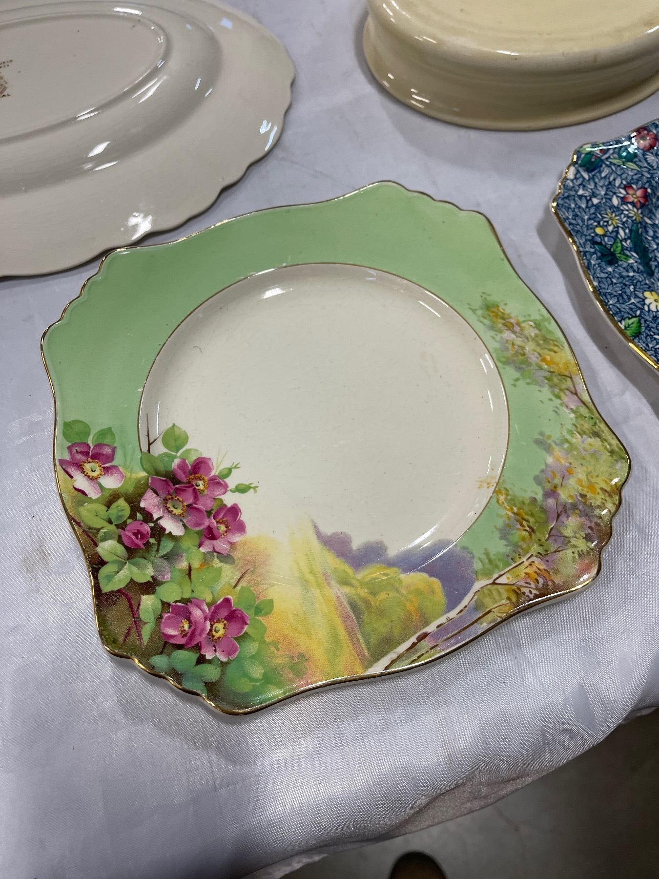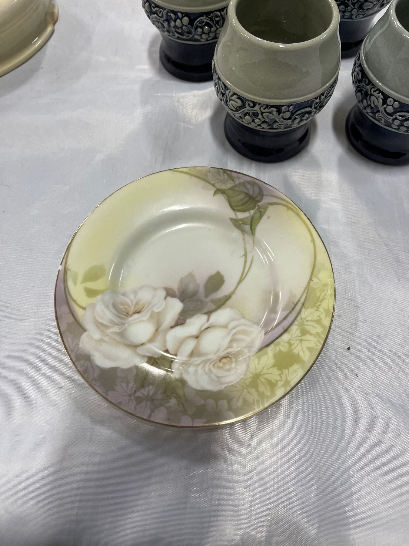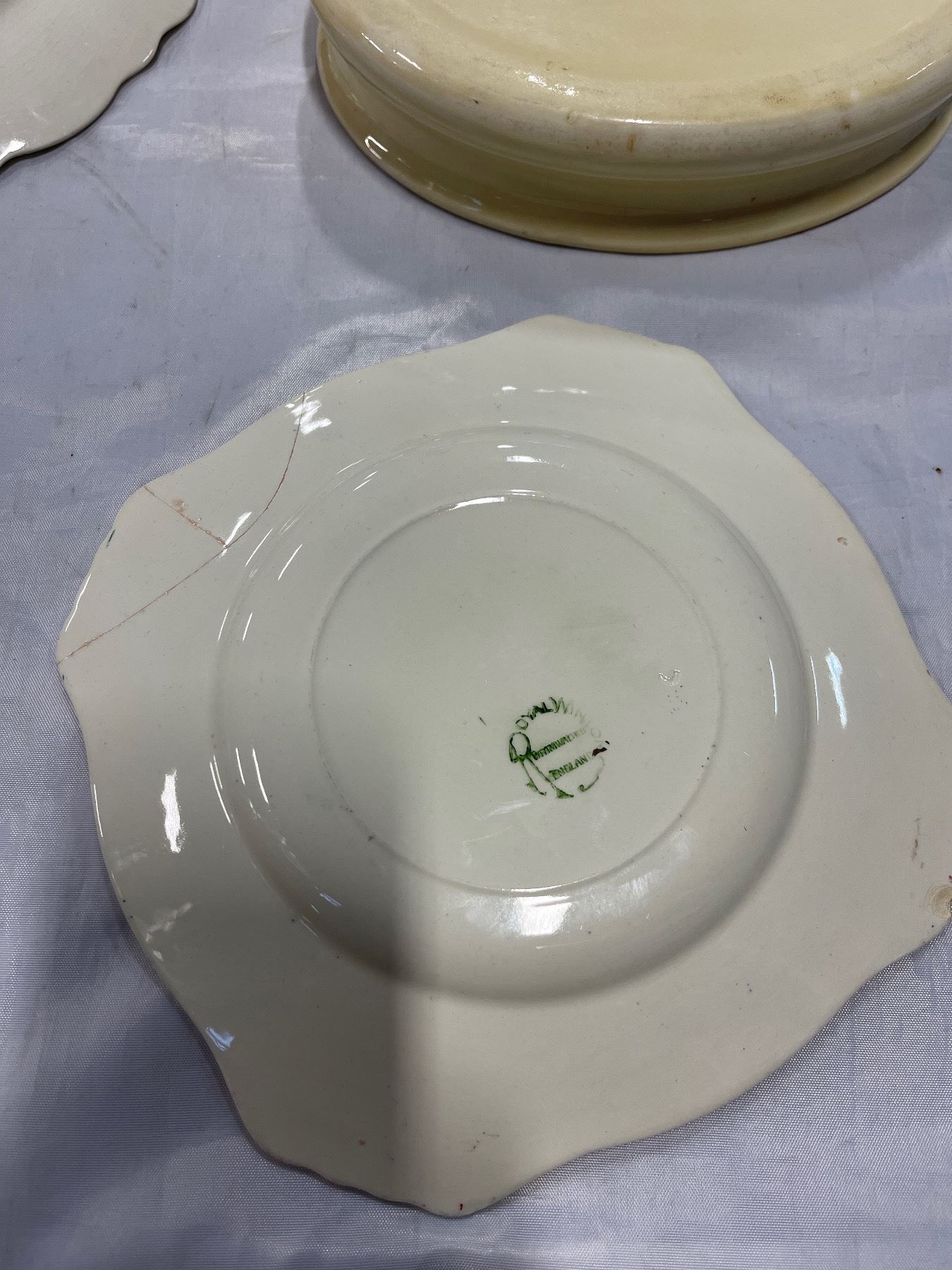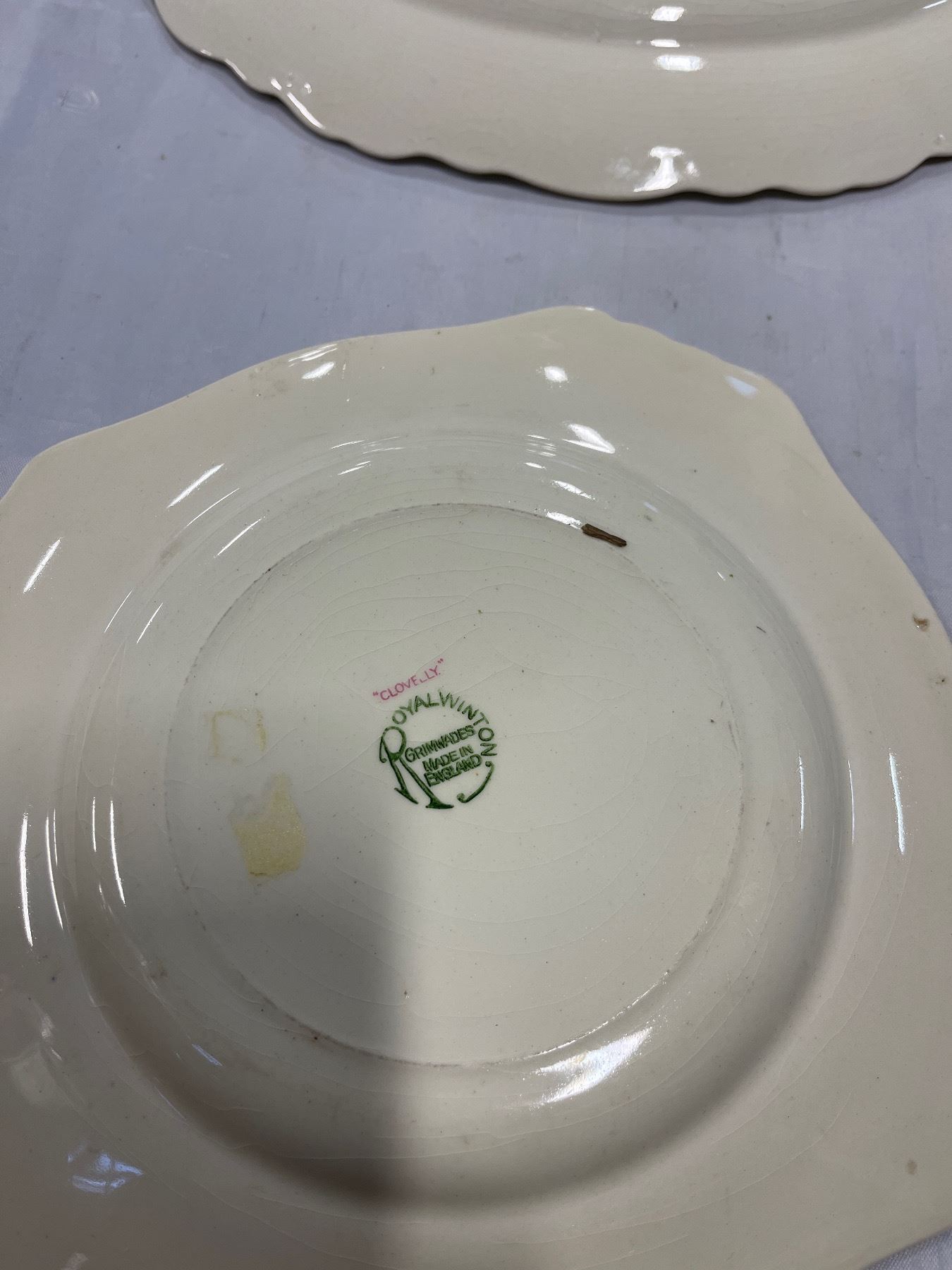 HEAVY BUNNYKINS BOWL, 2 ROYAL WINTON GRIMWADES PLATES, POTTERY CUPS