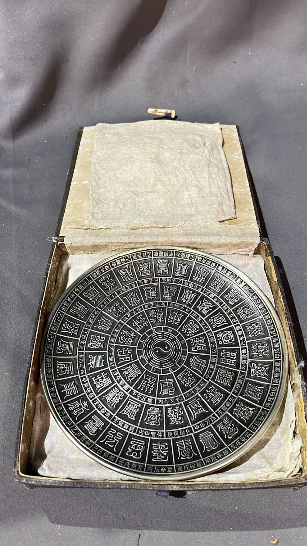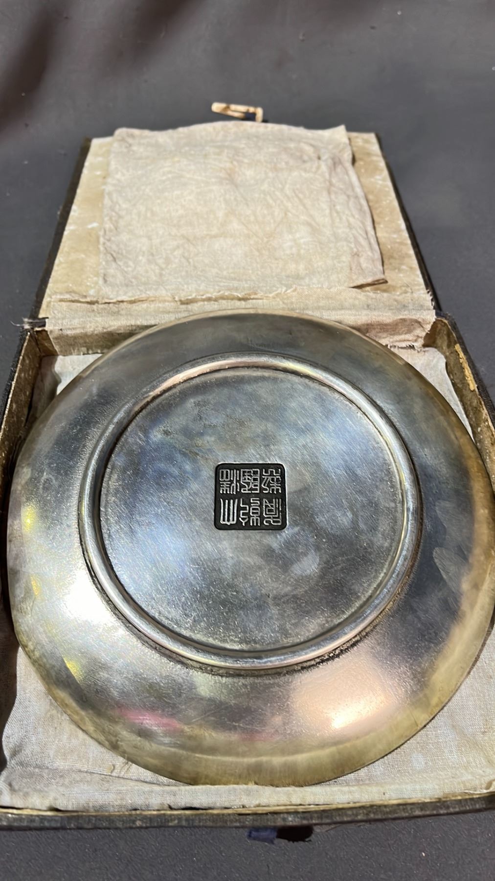 HEAVY CASTED SEAL SCRIPT PRAYER SAUCER IN CASE