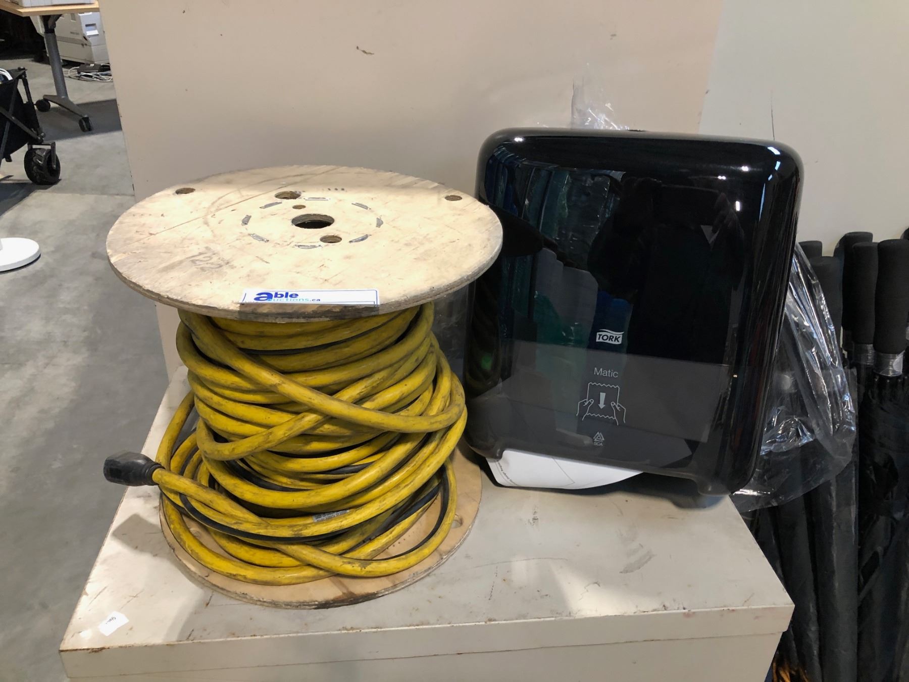 HEAVY DUTY EXTENSION CORD AND HAND TOWL DISPENSER