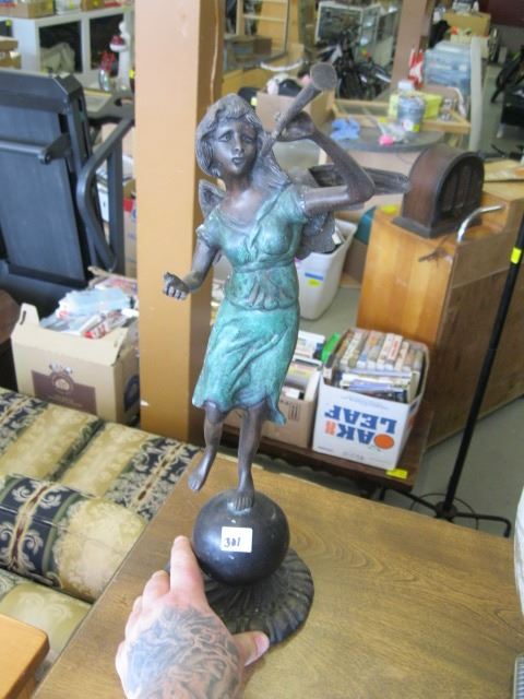 HEAVY METAL STATUE OF ANGEL BLOWING HORN