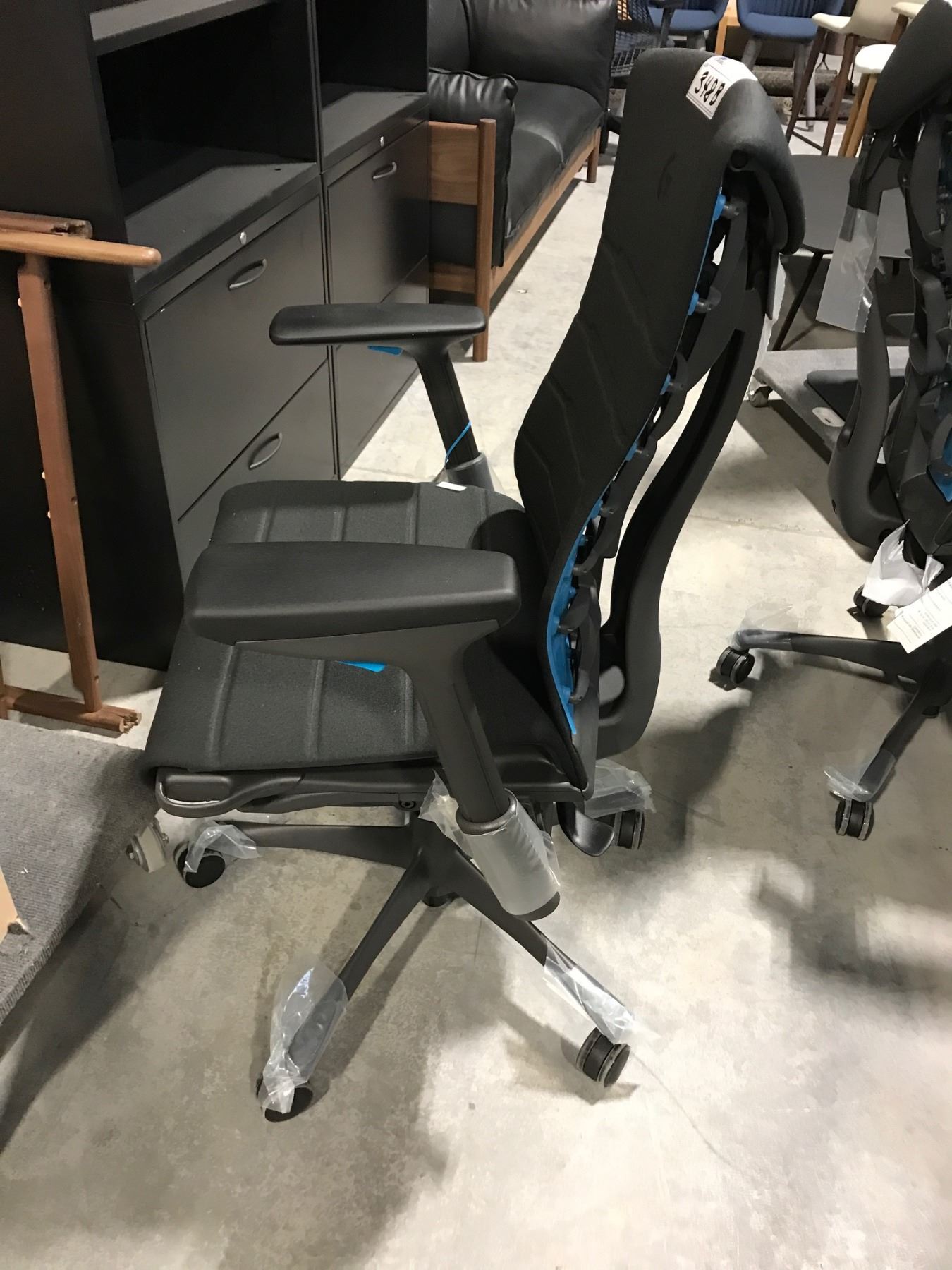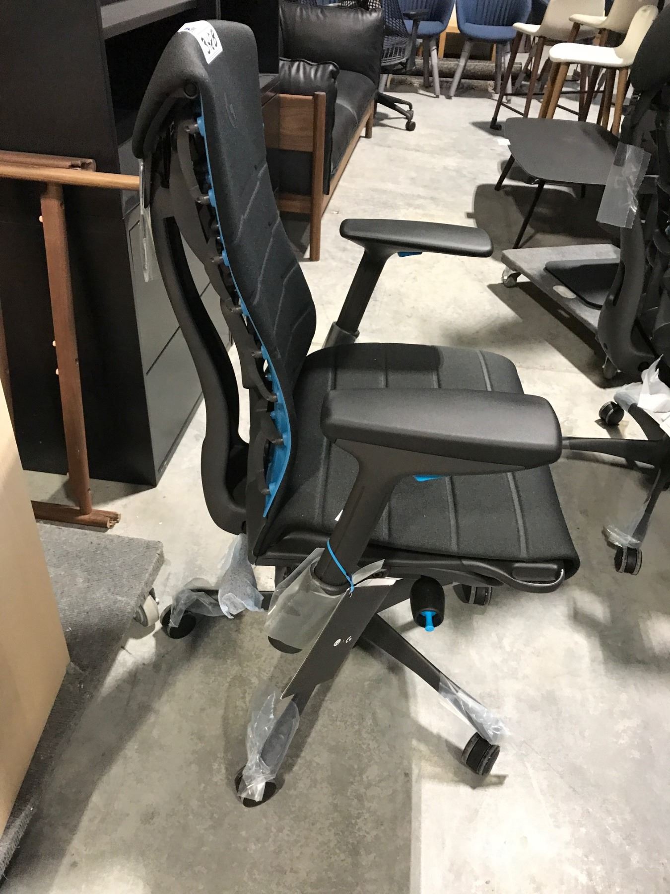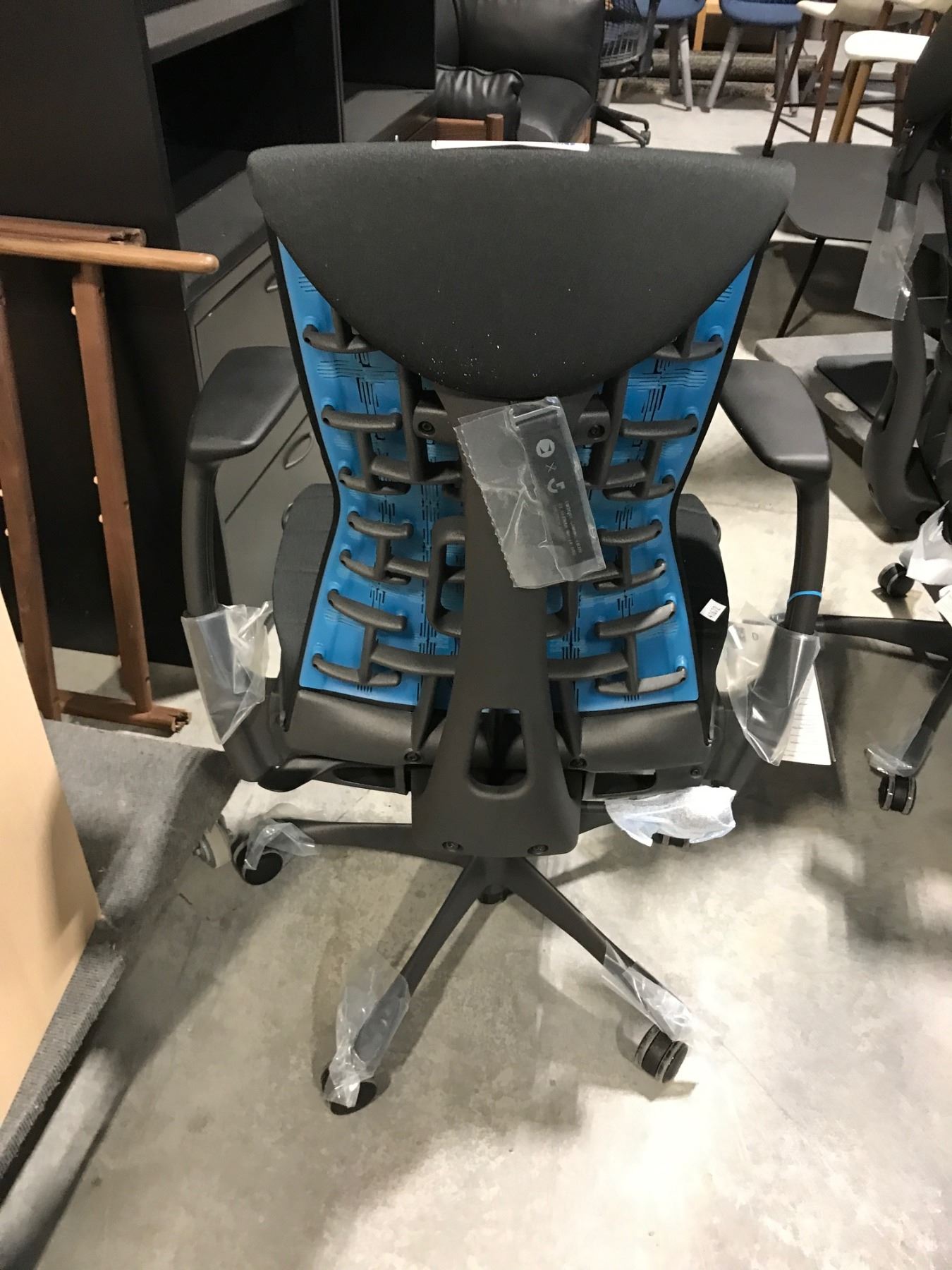 HERMAN MILLER EMBODY BLACK/CYAN FULLY ADJUSTABLE GAMING TASK CHAIR RETAIL $ 2,895.41 CAN