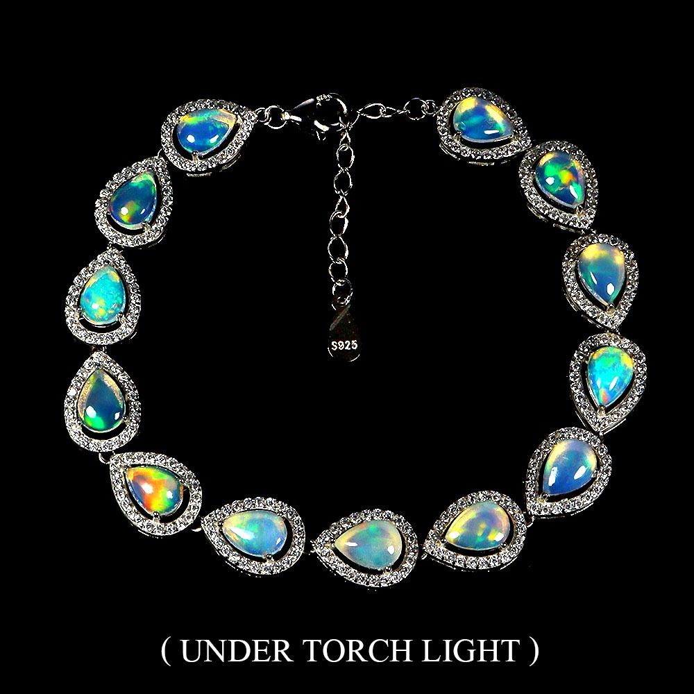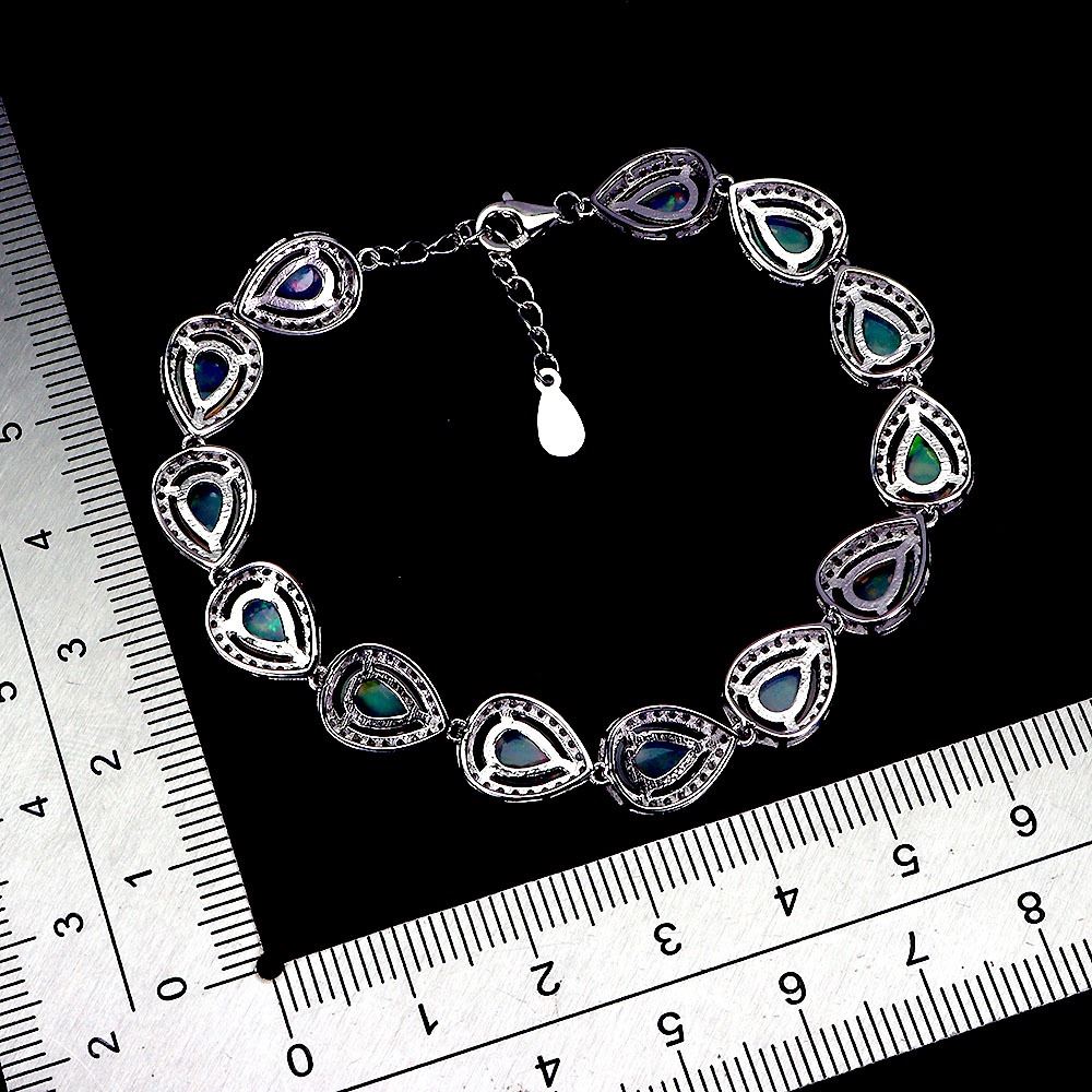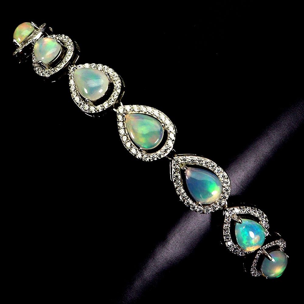 HIGH VALUE OPAL BRACELET IN 14K WHITE PLATED GOLD OVER 925 STERLING SILVER - 7.5 INCHES LONG - APPRAISED REPLACEMENT VALUE