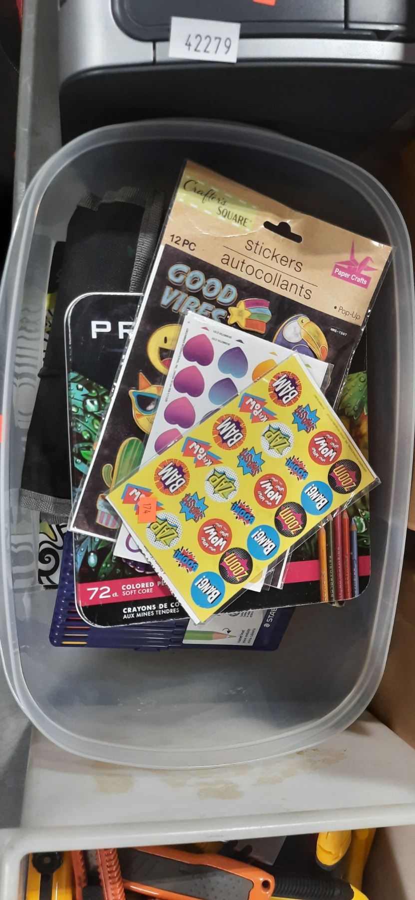 HIKVISION EKI-K41T44 4K NVR SECURITY CAMERA KIT, HP LASERJET P1006, BOX OF ASSORTED BOX CUTTERS, ART SUPPLIES, AND BOX OF ASSORTED POWER BANKS, FLASHLIGHTS AND NOTE BOOKS