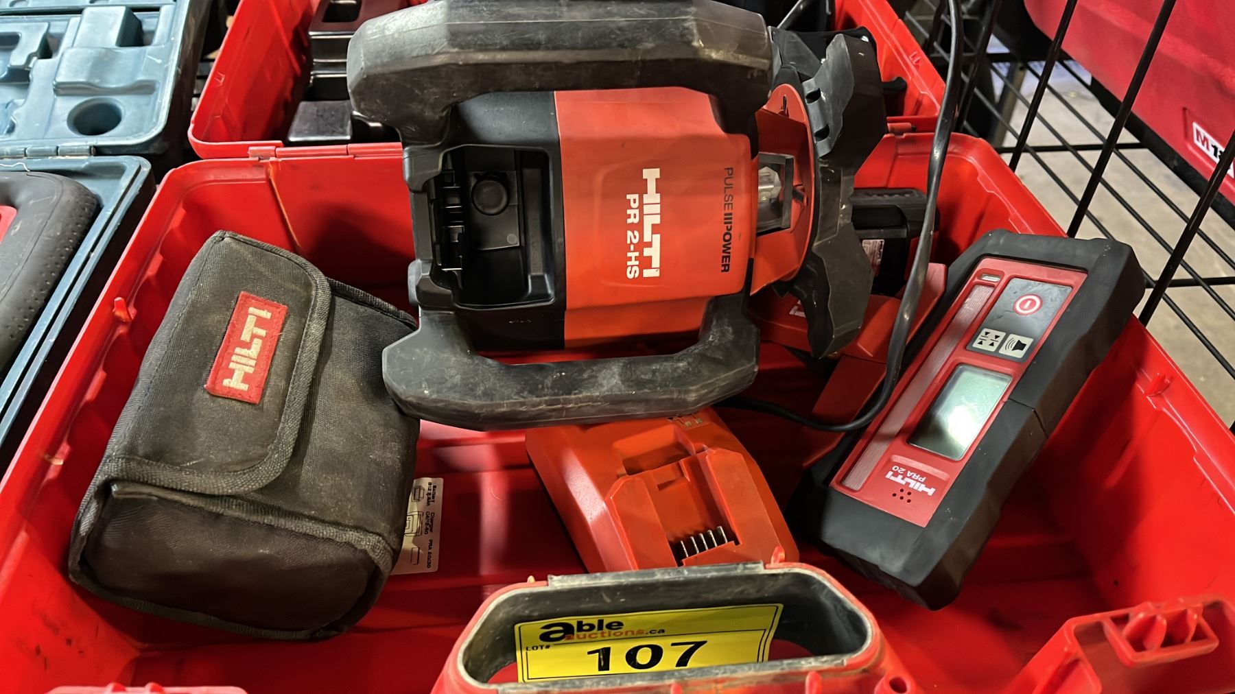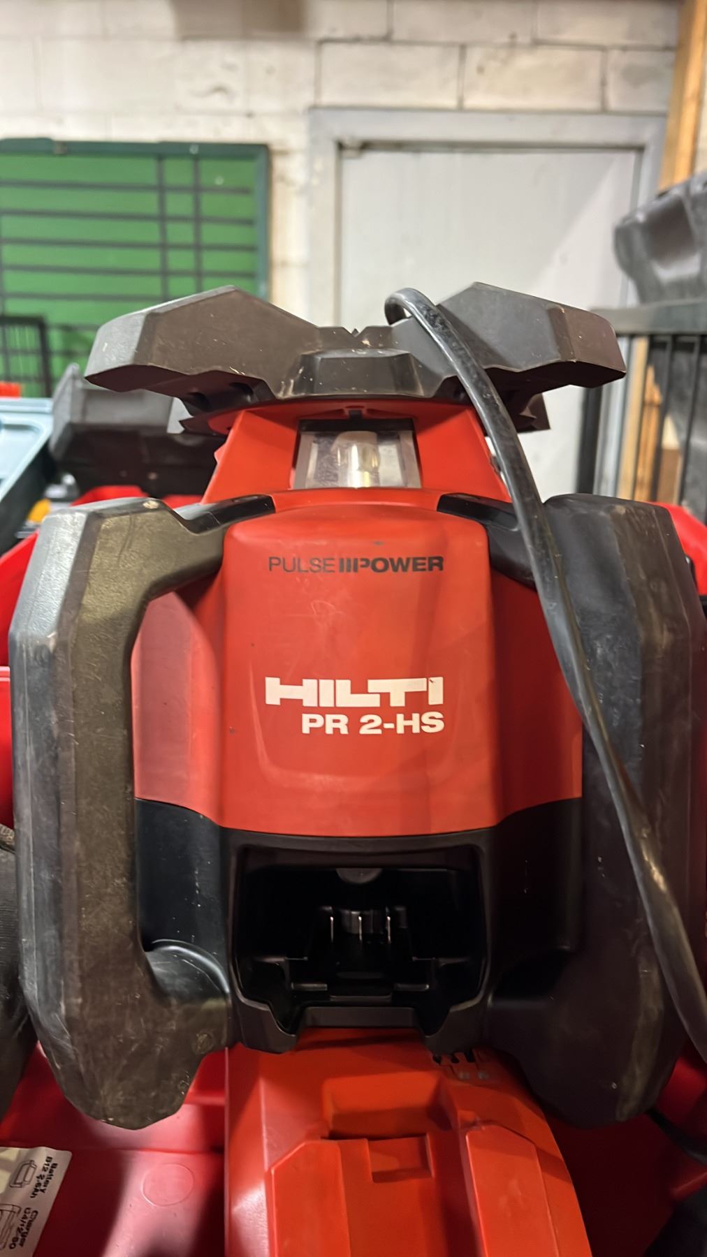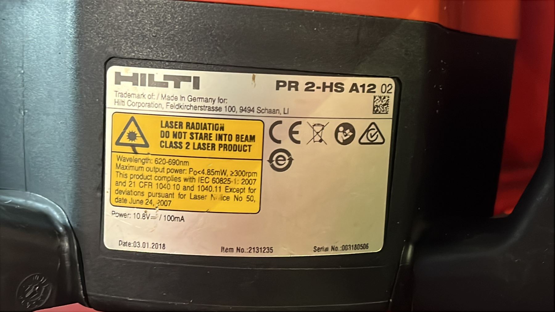 HILTI PR 2-HS ROTATING LASER LEVEL WITH RECEIVER, BATTERY & CHARGER IN A HARD TRANSPORT CASE