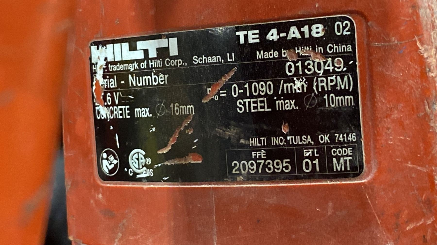 HILTI TE 4-A18 CPG CORDLESS INDUSTRIAL CONCRETE DRILL WITH HILTI TE DRS 4-A HAMMER VAC IN HARD TRANSPORT CASE