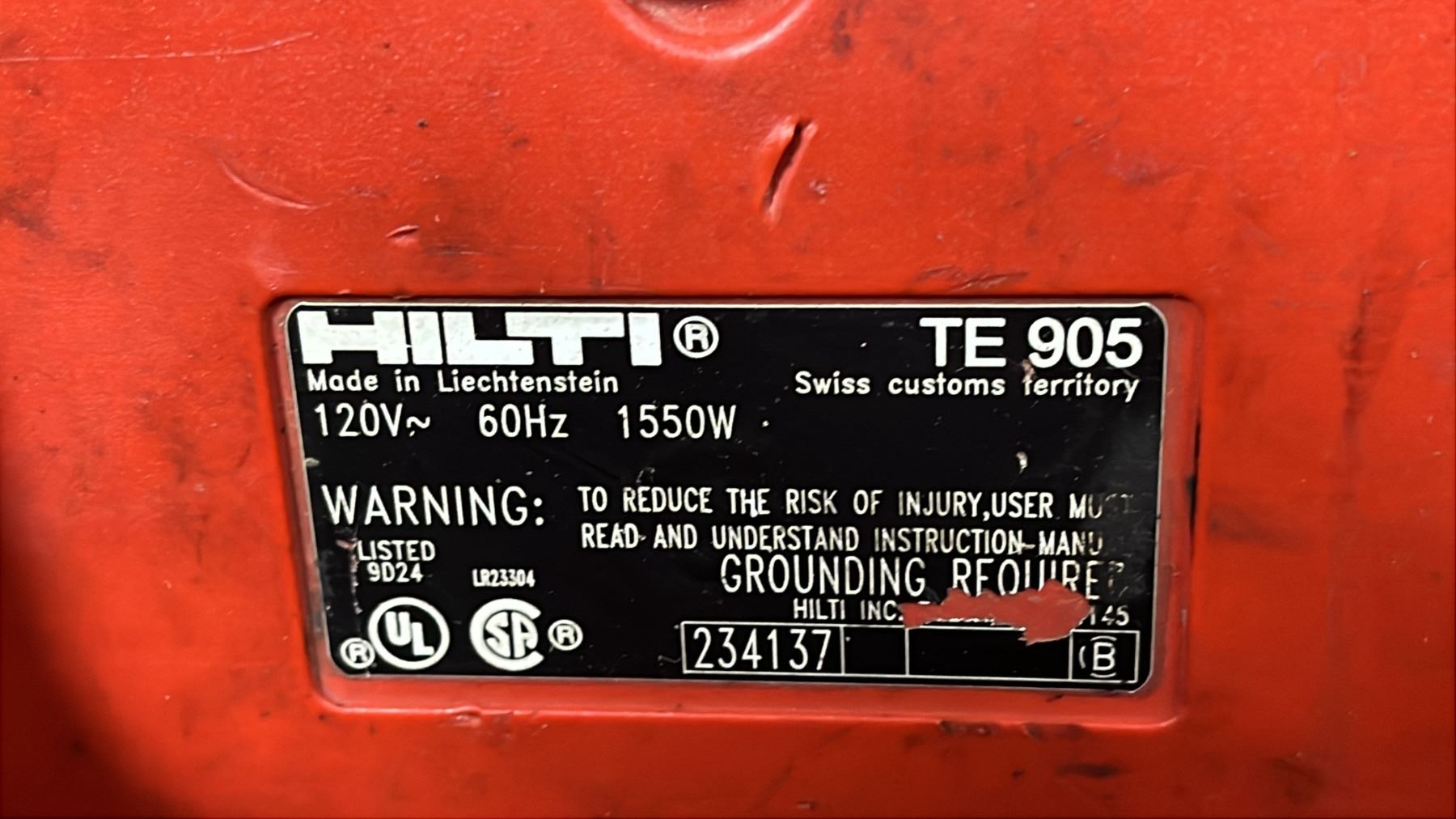 HILTI TE 905 ELECTRIC DEMOLITION HAMMER IN A HARD TRANSPORT CASE