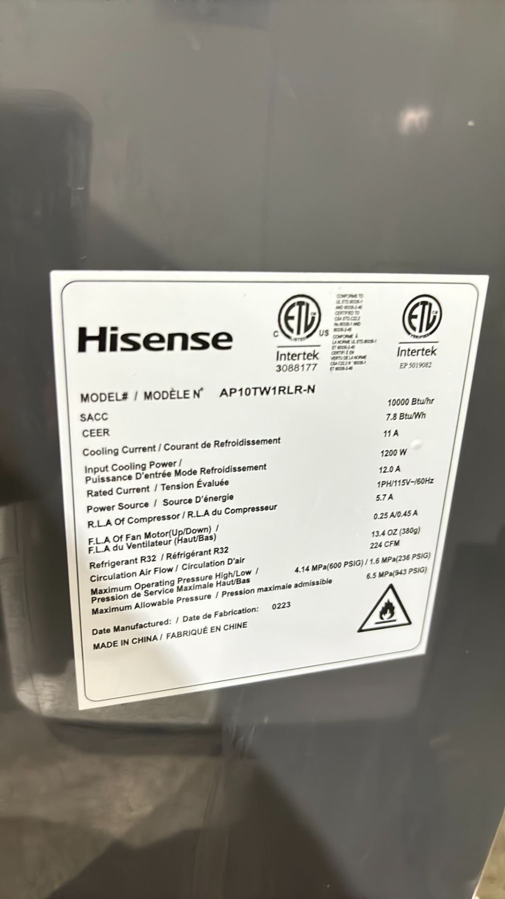 HISENSE PORTABLE AIR CONDITIONER 10000BTU *NO HOSE/ NO REMOTE*