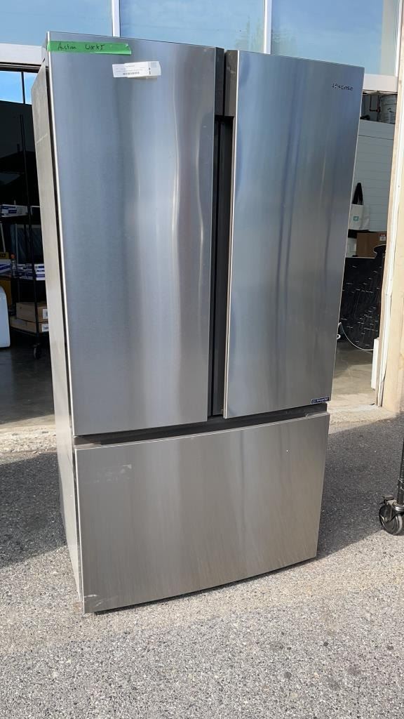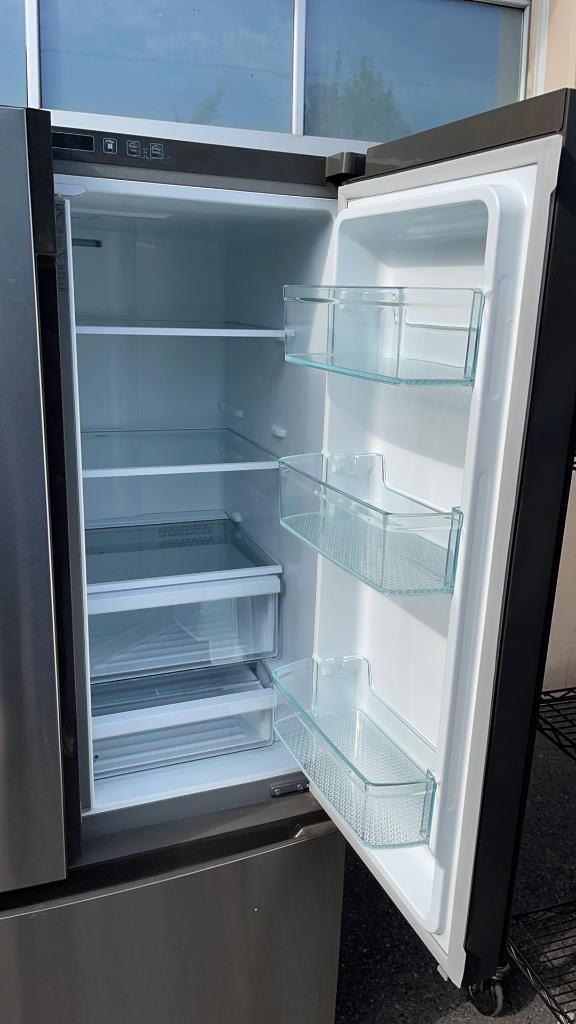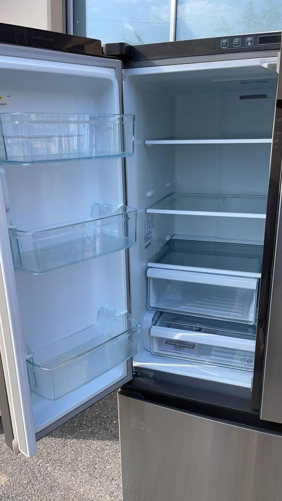 HISENSE STAINLESS DOUBLE DOOR BOTTOM FREEZER REFRIGERATOR WORKING STORE DEMO