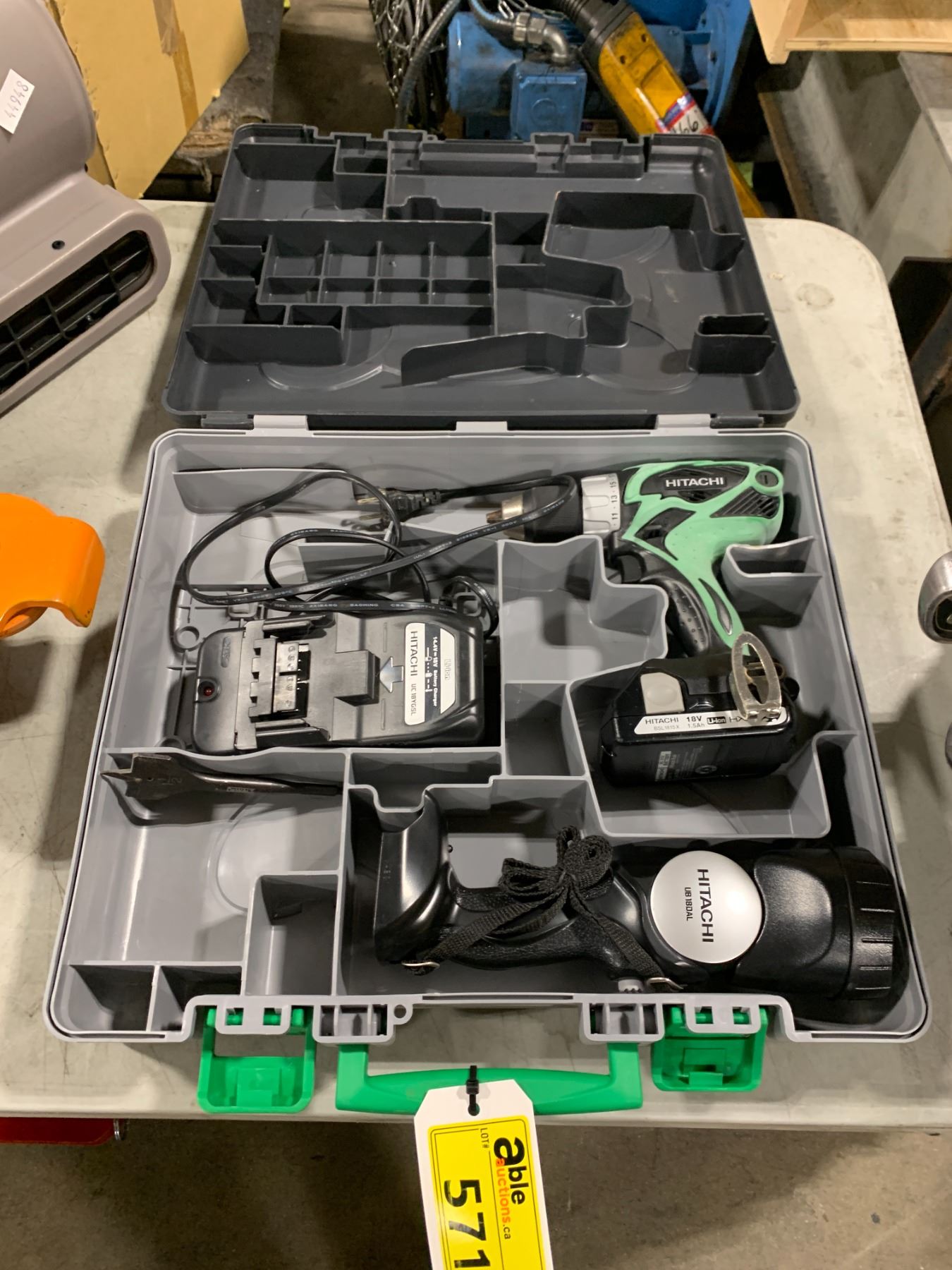 HITACHI CORDLESS DRILL, FLASH LIGHT CHARGER + BATTERY CASE