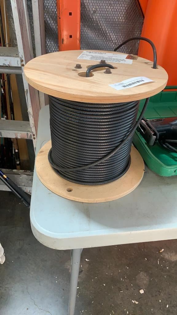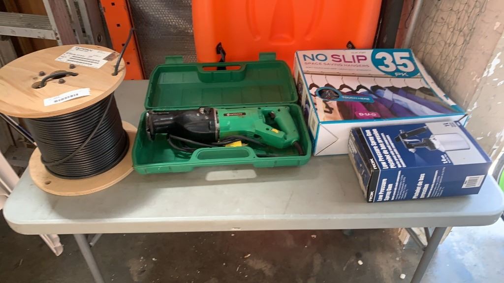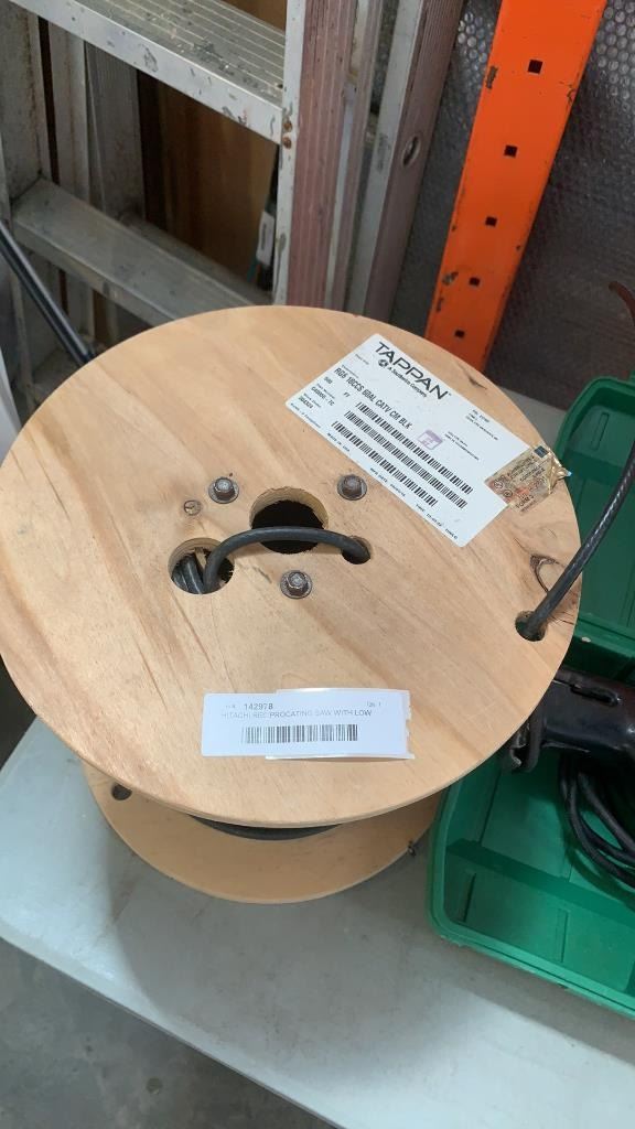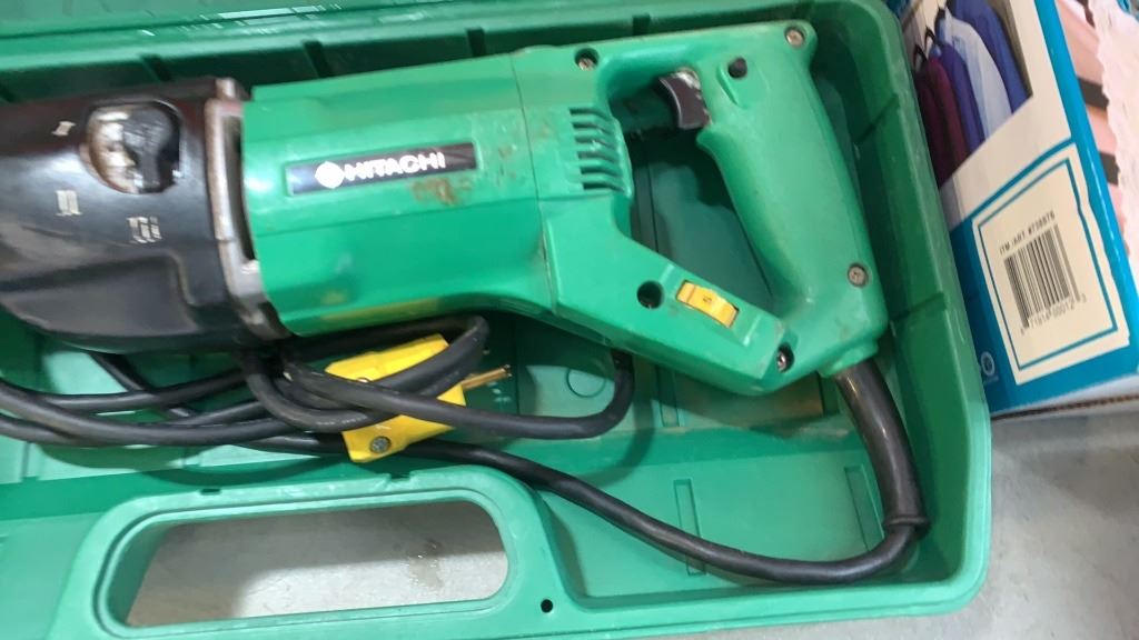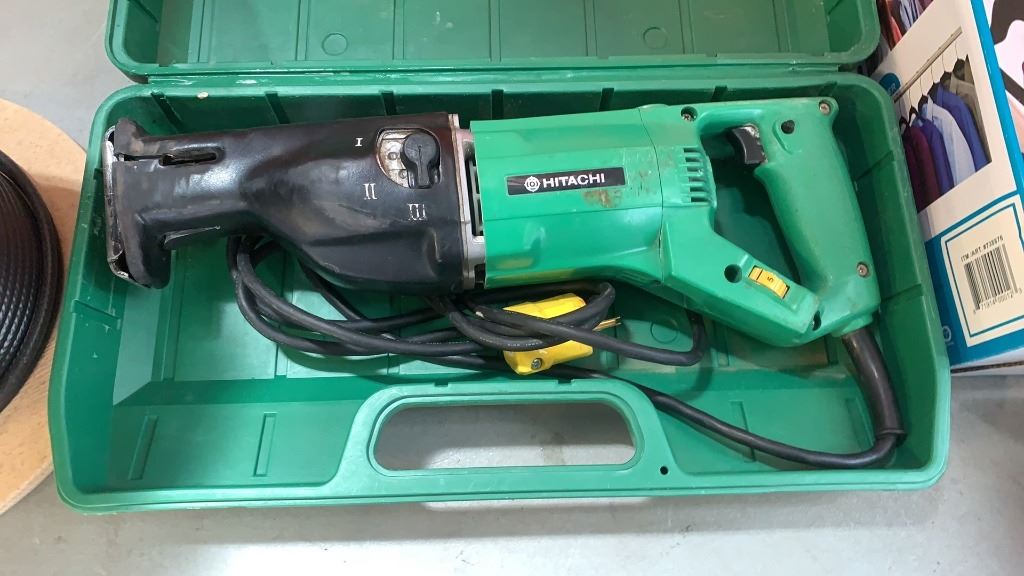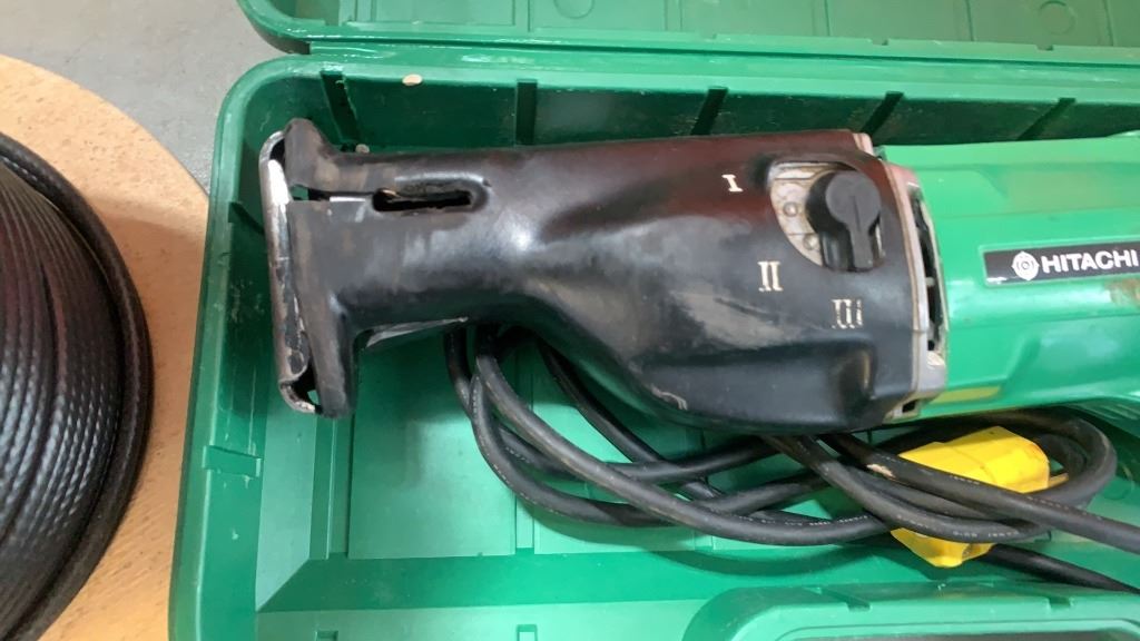 HITACHI RECIPROCATING SAW WITH LOW PRESSURE SPRAY GUN, HANGERS AND SPOOL OF CABLE