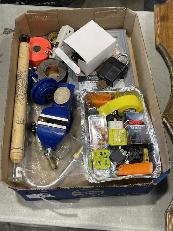 HOBBY VICE, FUSES, PADLOCK, SHELF AND TARP