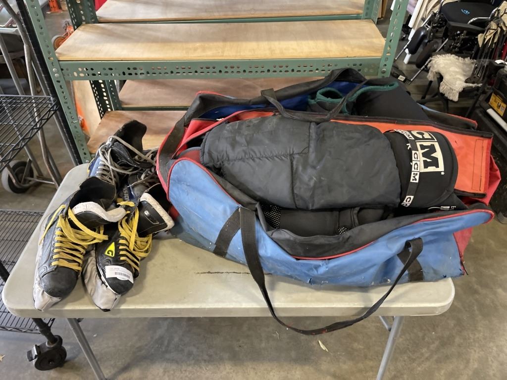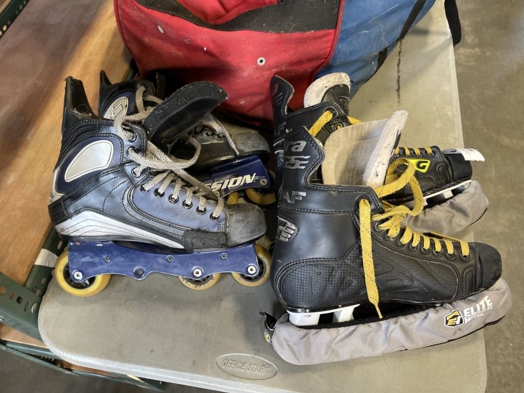 HOCKEY BAG WIT GHEAR, SET OF SKATES AND ROLLERBLADES, SIZE 9