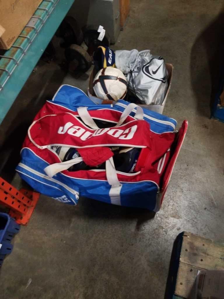 HOCKEY BAG WITH HOCKEY PADS, SKATES