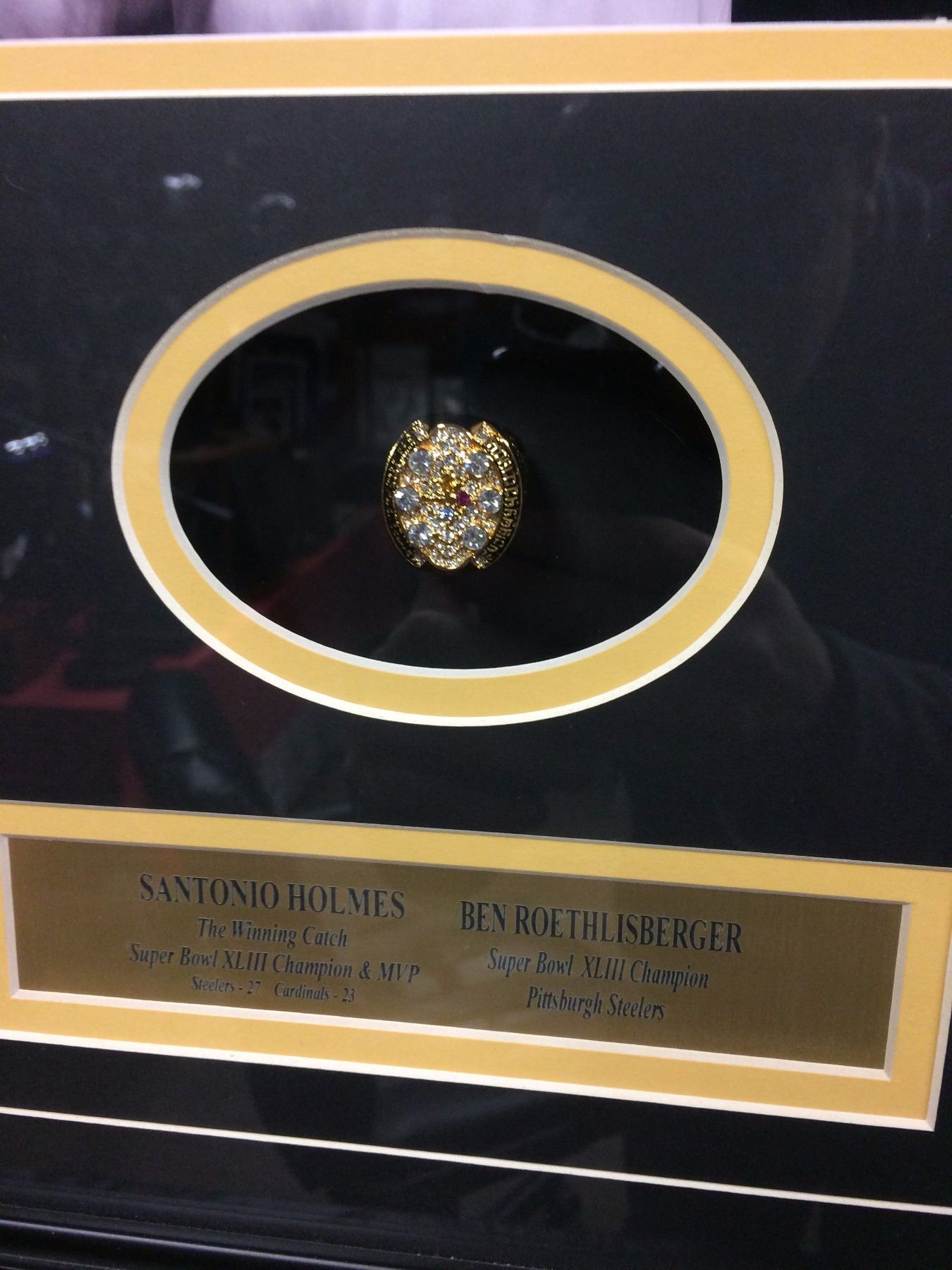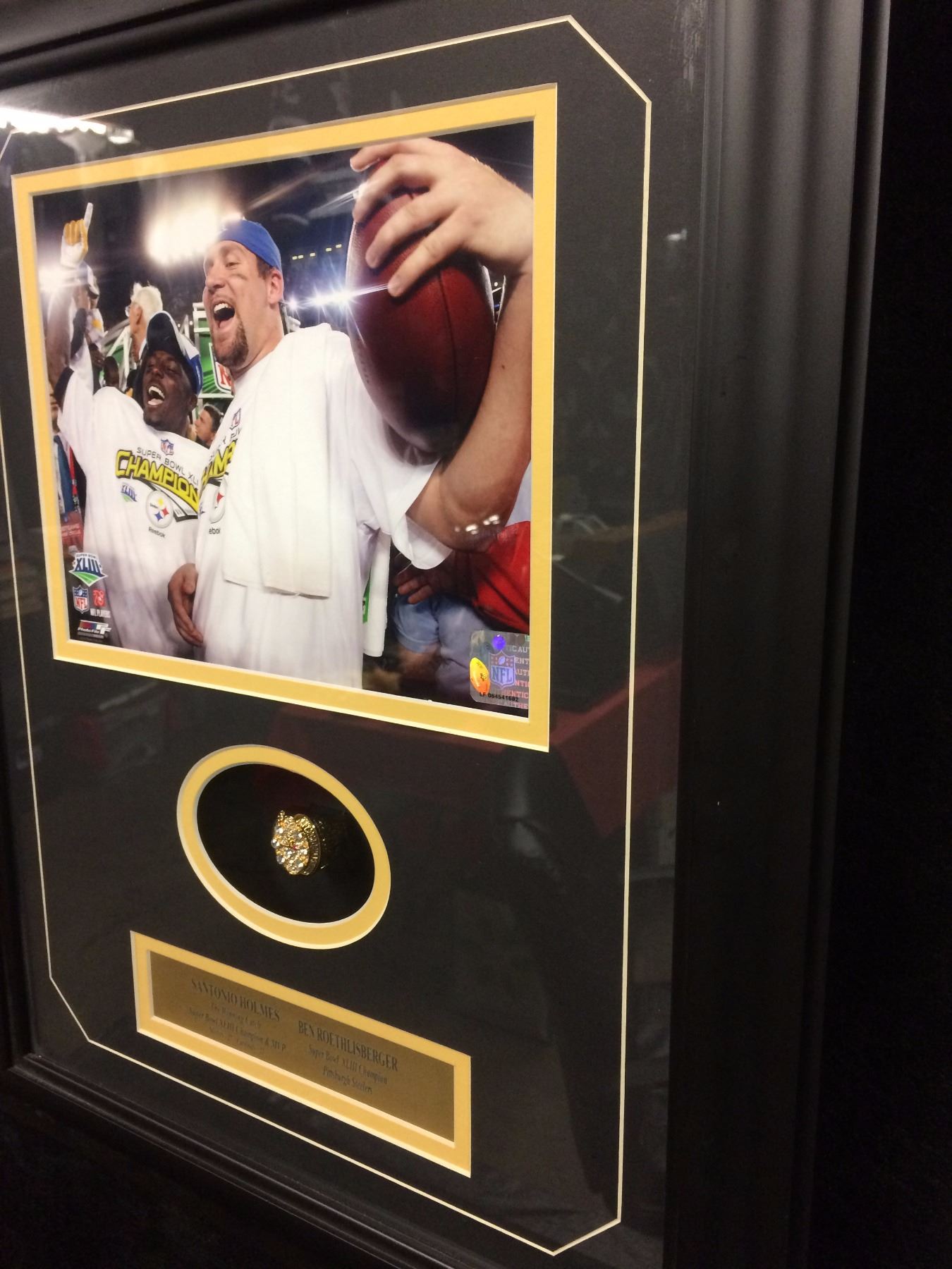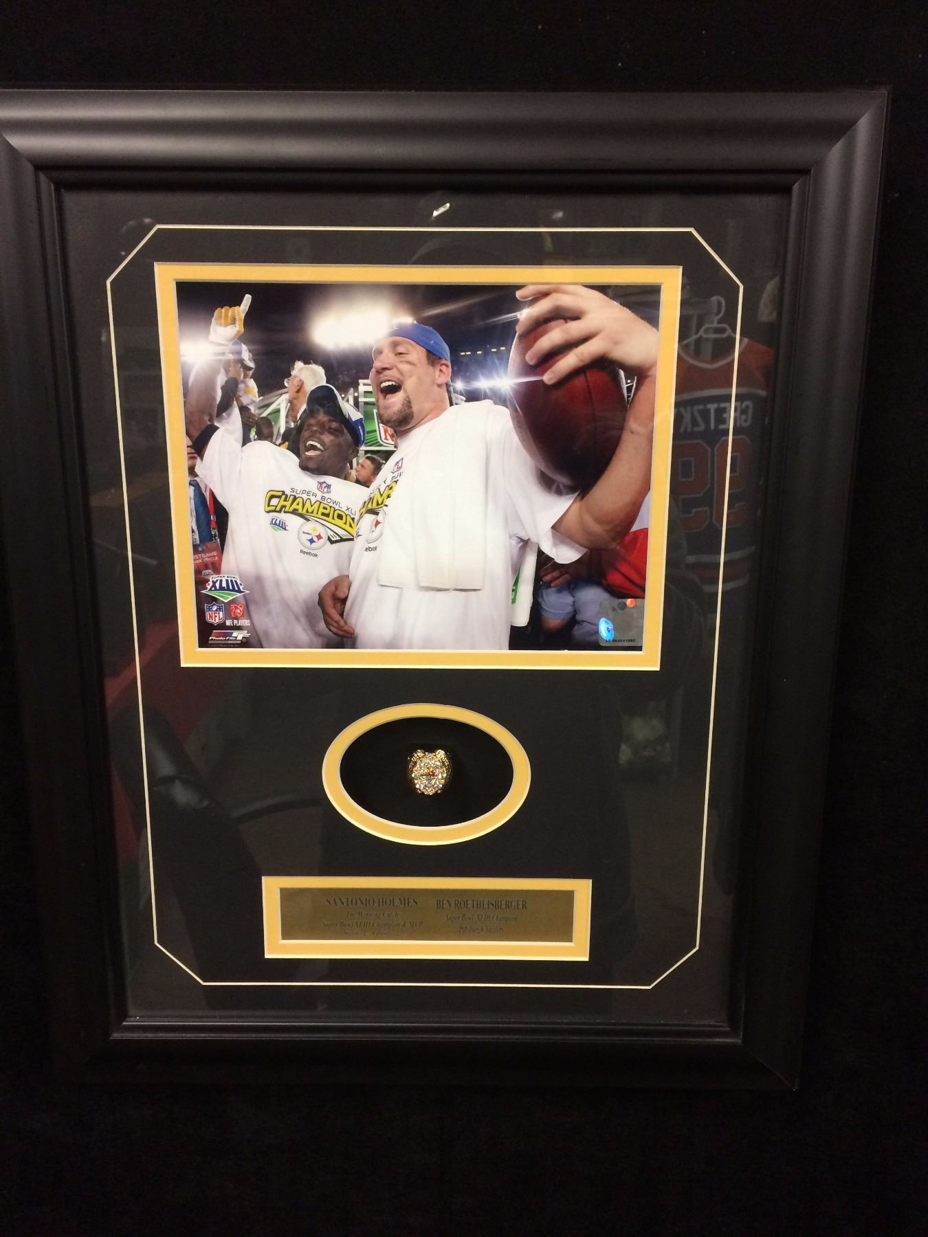 HOLMES & ROETHLISBERGER SUPERBOWL XLIII CHAMPS 17  X 21  FRAMED PHOTO W/REPLICA SUPERBOWL RING INSET