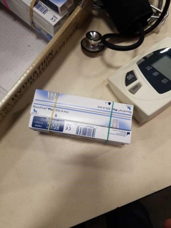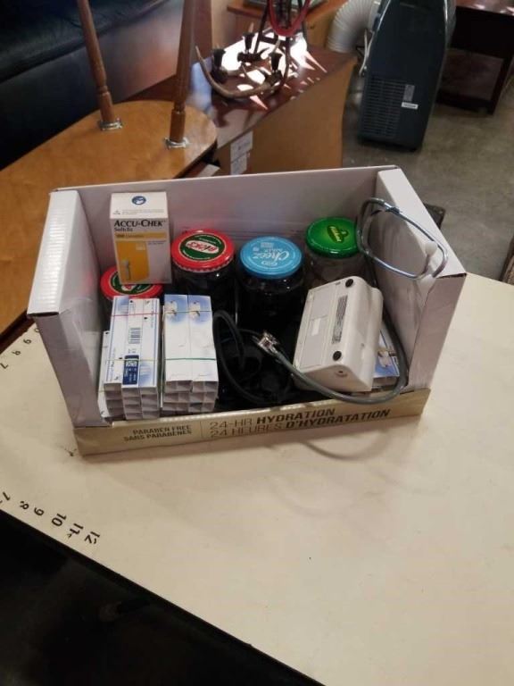 HOMEDICS BLOOD PRESSURE MONITOR WORKING WITH LARGE AND SMALL CUFFS, JARS OF DECORATIVE STONES, NOVA FINE PLUS 4MM NEEDLE TIPS, ACCUCHEK SOFT CLIX LANCETTES AND STEHOSCOPE