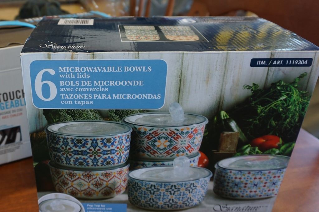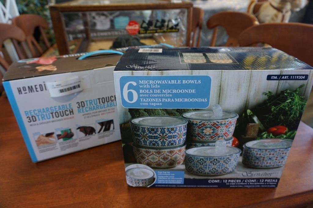 HOMEDICS RECHARGEABLE NECK AND SHOULDER MASSAGER WITH HEAT AND SIGNATURE 6 PIECE MICROWAVE BOWL SET