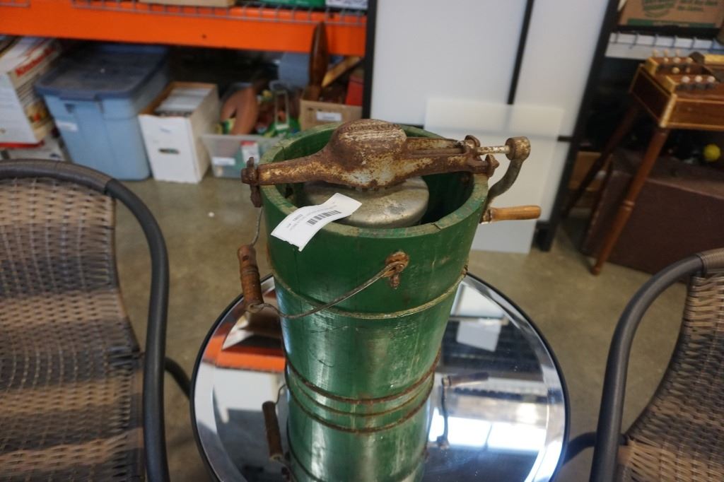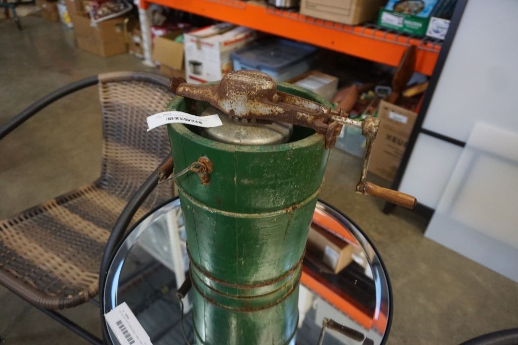 HOMESTEAD VINTAGE WOOD AND METAL ICE CREAM MAKER