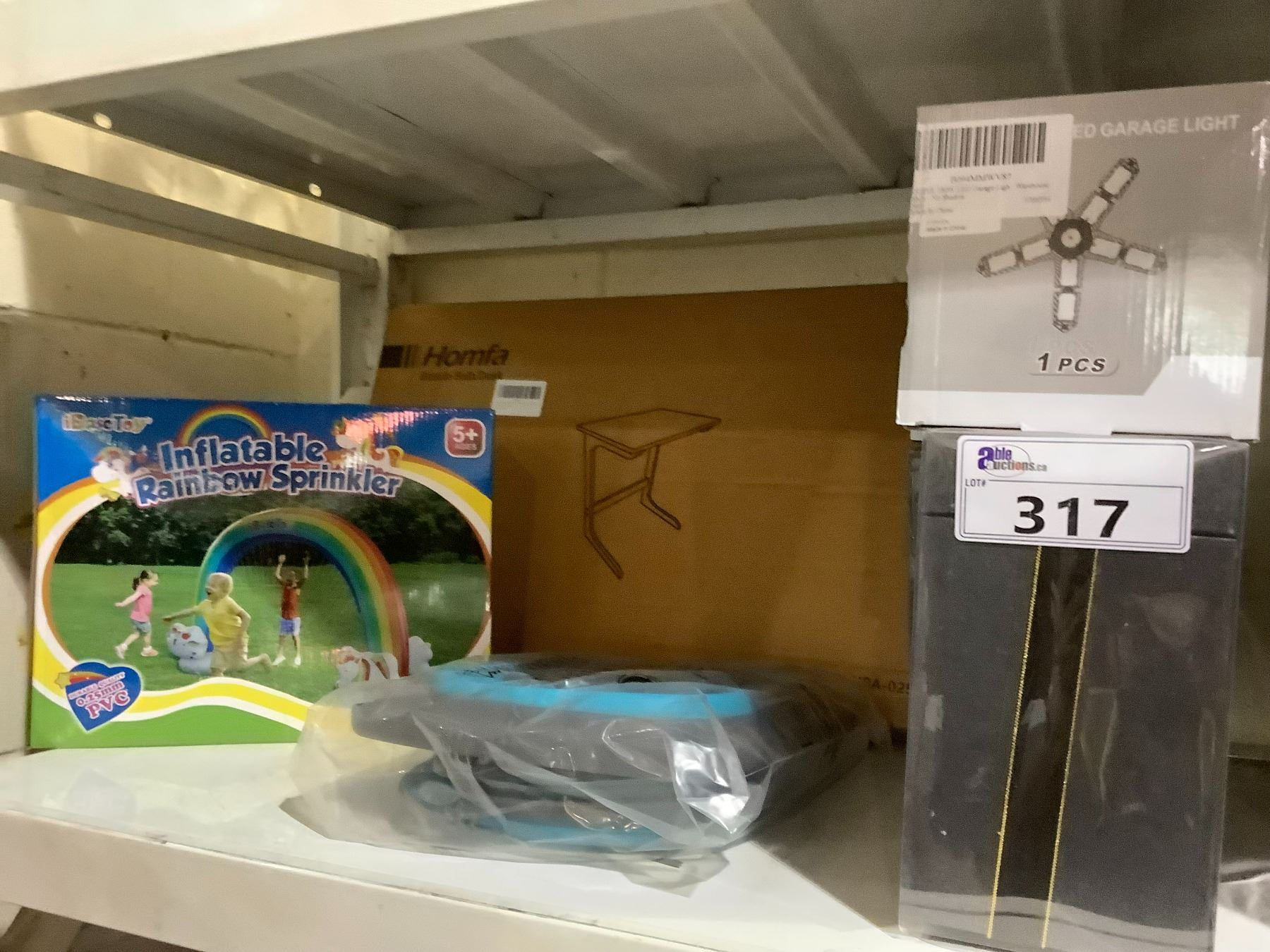 HOMFA BEDSIDE SOFA DESK, IBASETOY INFLATABLE RAINBOW SPRINKLER, COLLAPSIBLE COLANDER SET, 4 LED GARAGE LIGHTS & 4 QUBANG MOTHERS DAY ROSE GIFTS