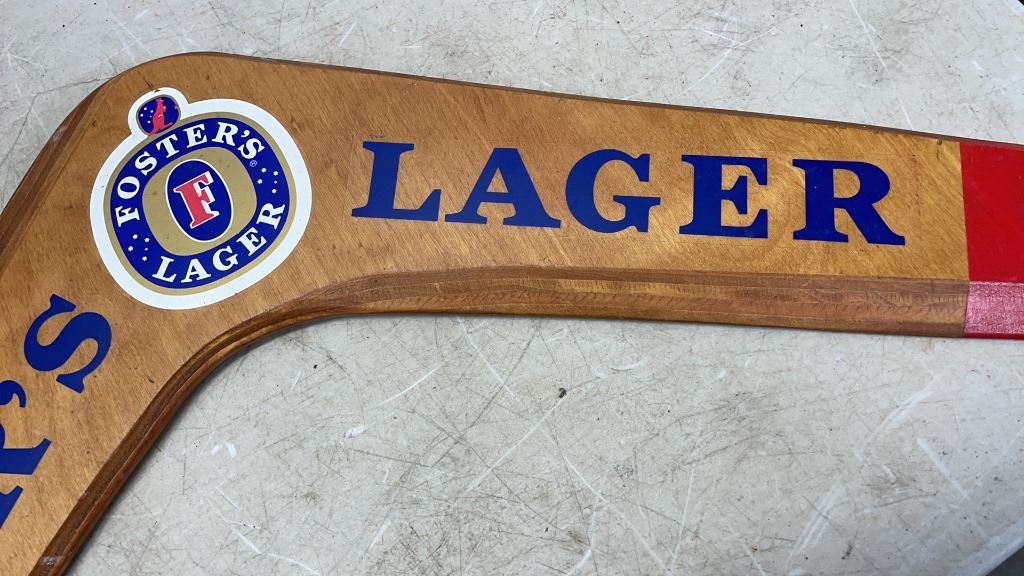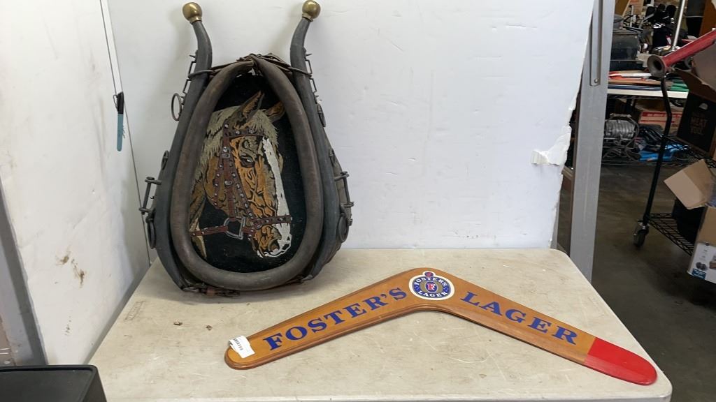 HORSE COLLAR ART AND FOSTERS LAGER BOOMERANG WALL ART