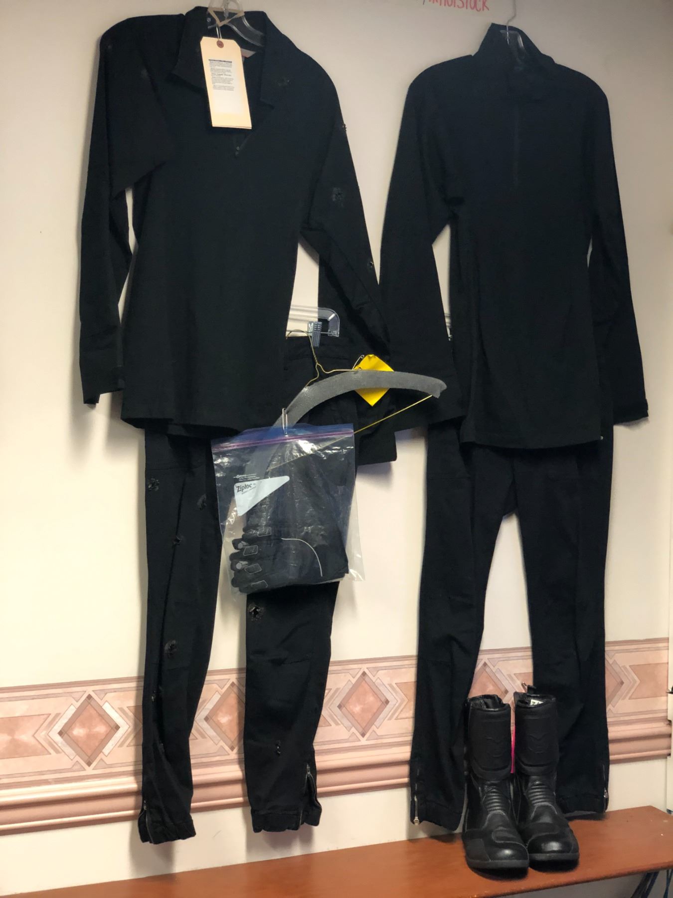 HOTSTOCK "Hero" (Girl) Robo trooper 8 pc. wardrobe costume - black shirt / pants / boots / gloves & bullet ridden black shirt w/ pants ep.708 multiple scenes (From the superhero show)