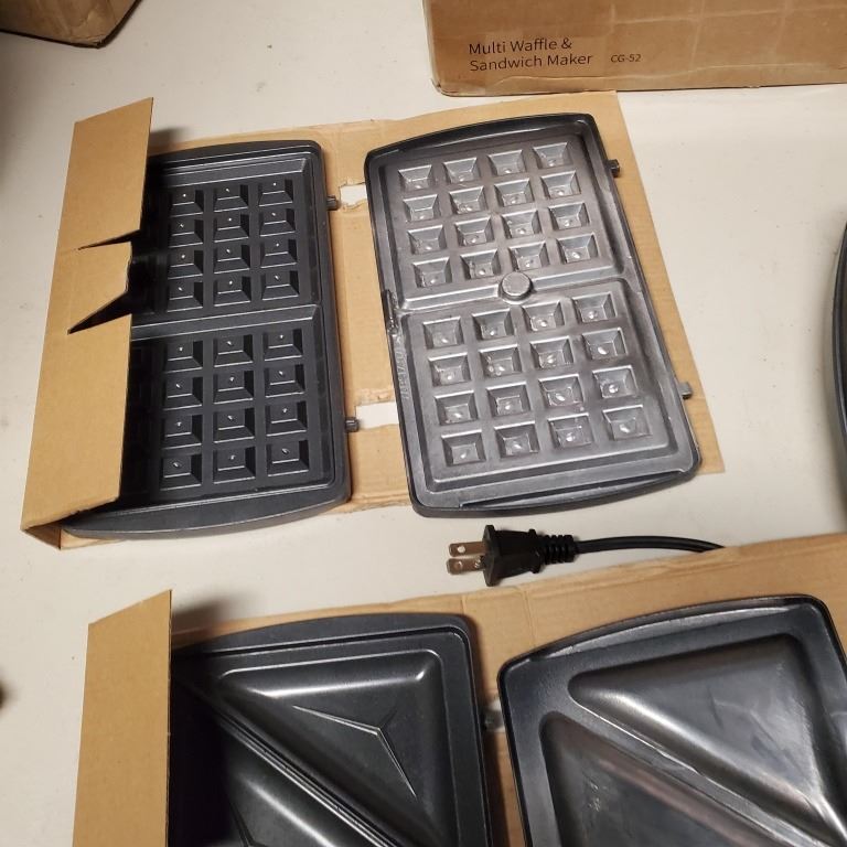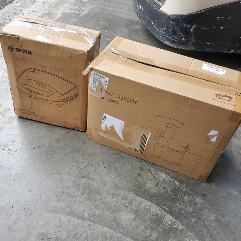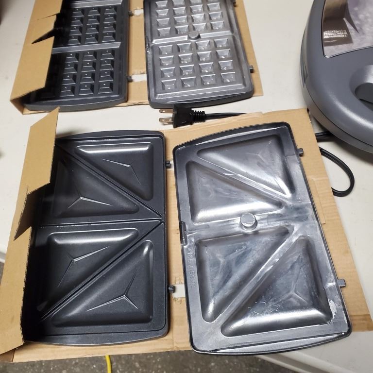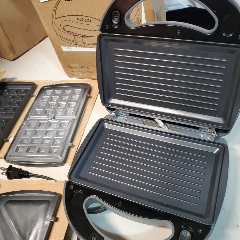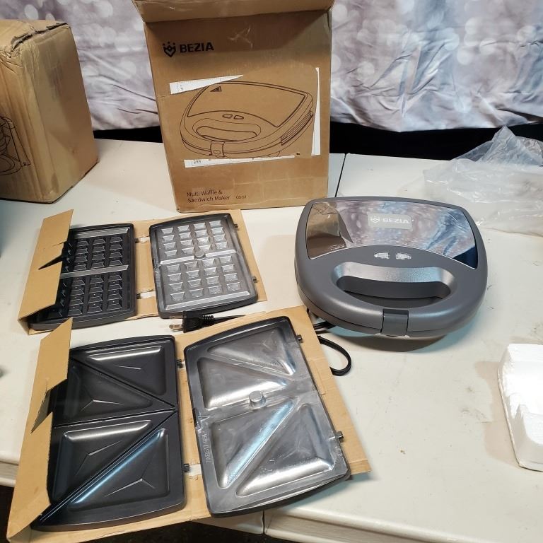 HOUSNAT JUICER AND BEZIA MULTI WAFFLE AND SANDWICH MAKER BOTH TESTED AND WORKING RETAIL $400