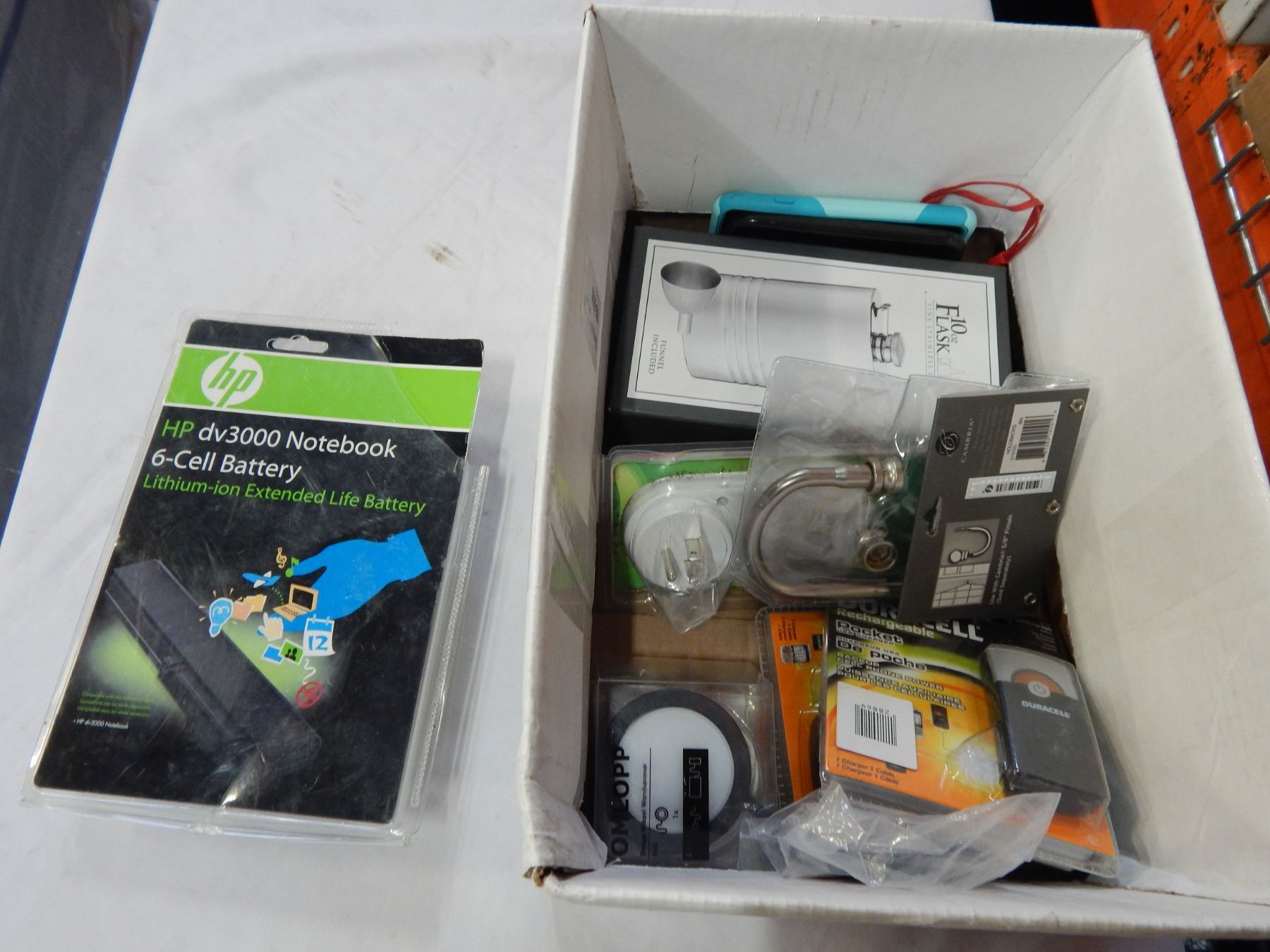 HP LAPTOP BATTERY, DURACELL CHARGERS, FLASK AND MORE