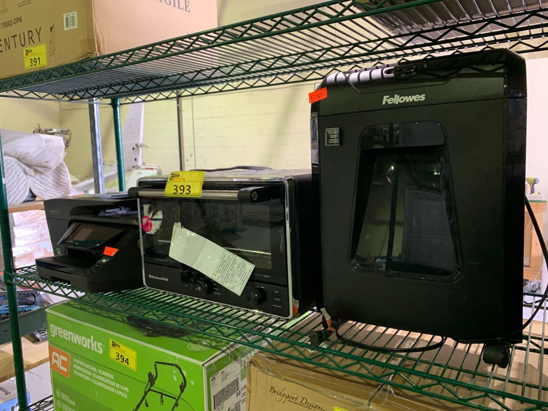 HP OFFICEJET PRINTER, KITCHENAID TOASTER OVEN AND FELLOWS PAPER SHREDDER