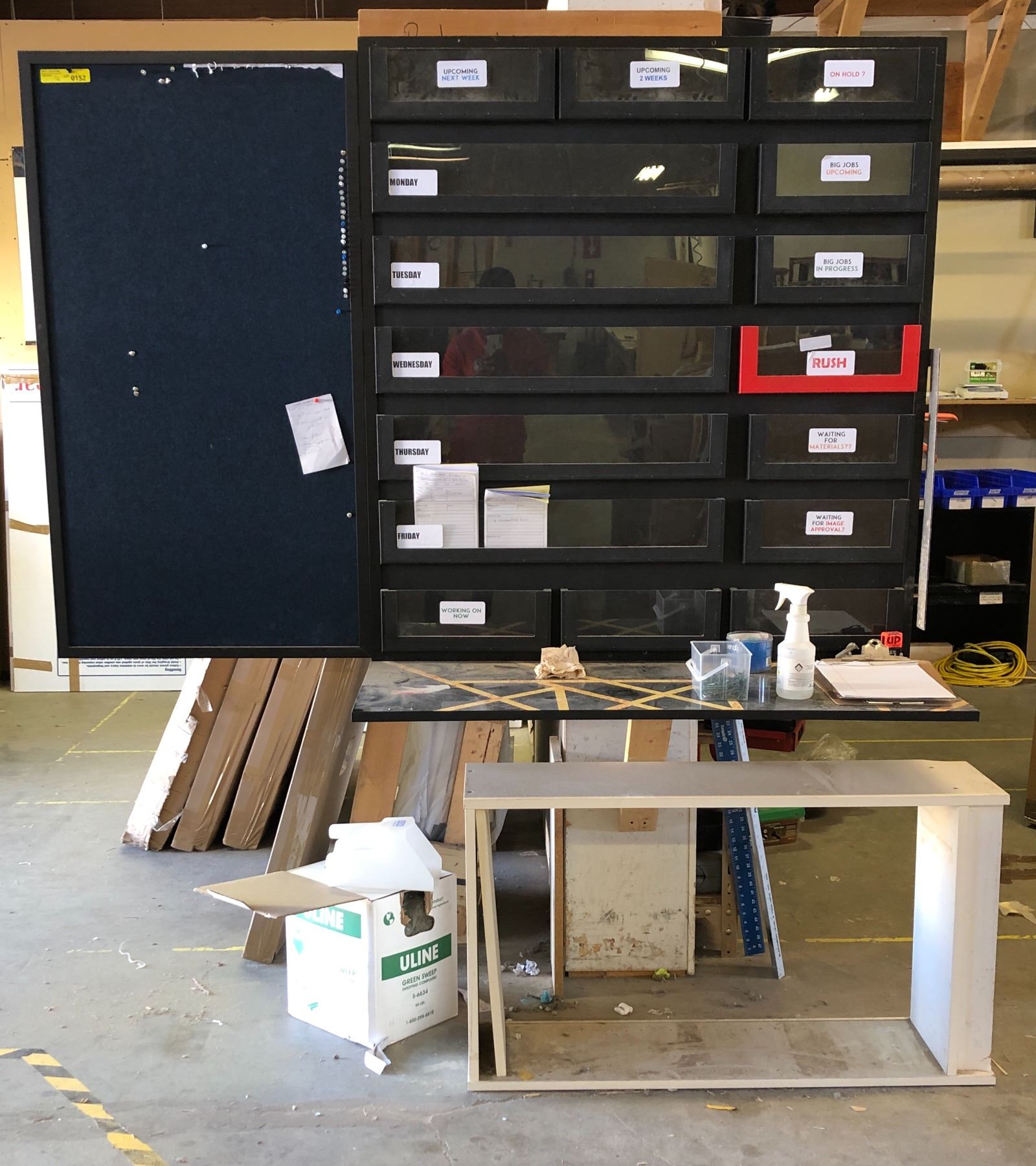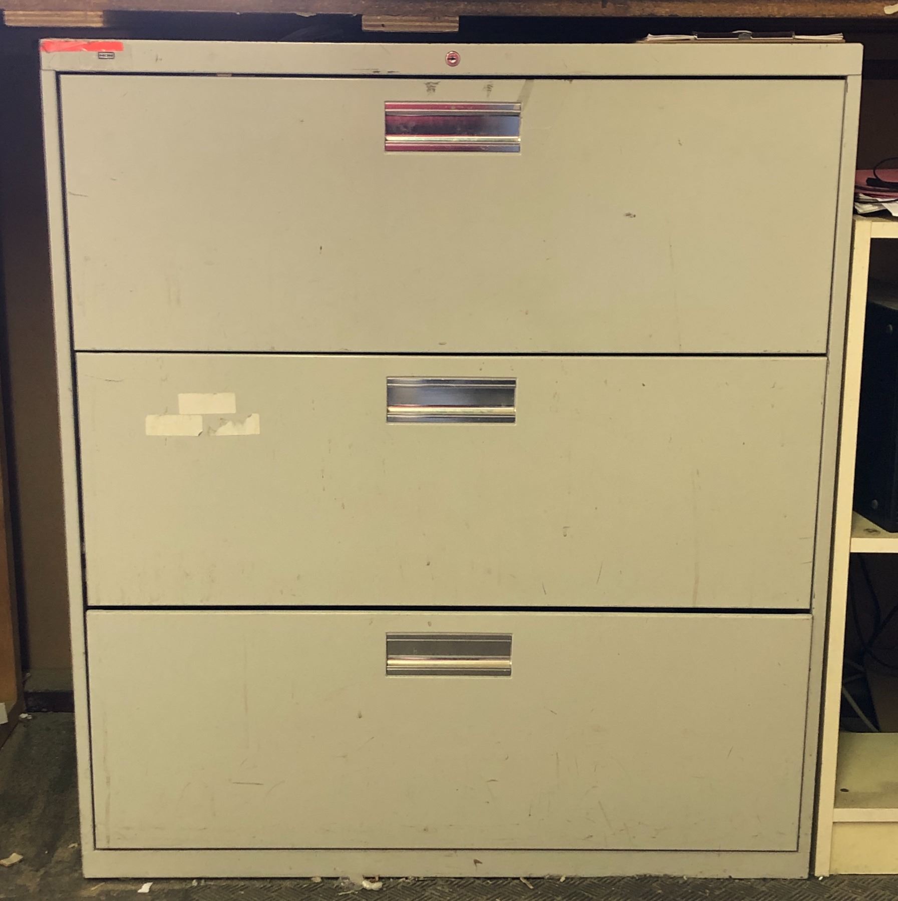HTN 3 drawer filing cabinet & weekly calendar board w/ shelving