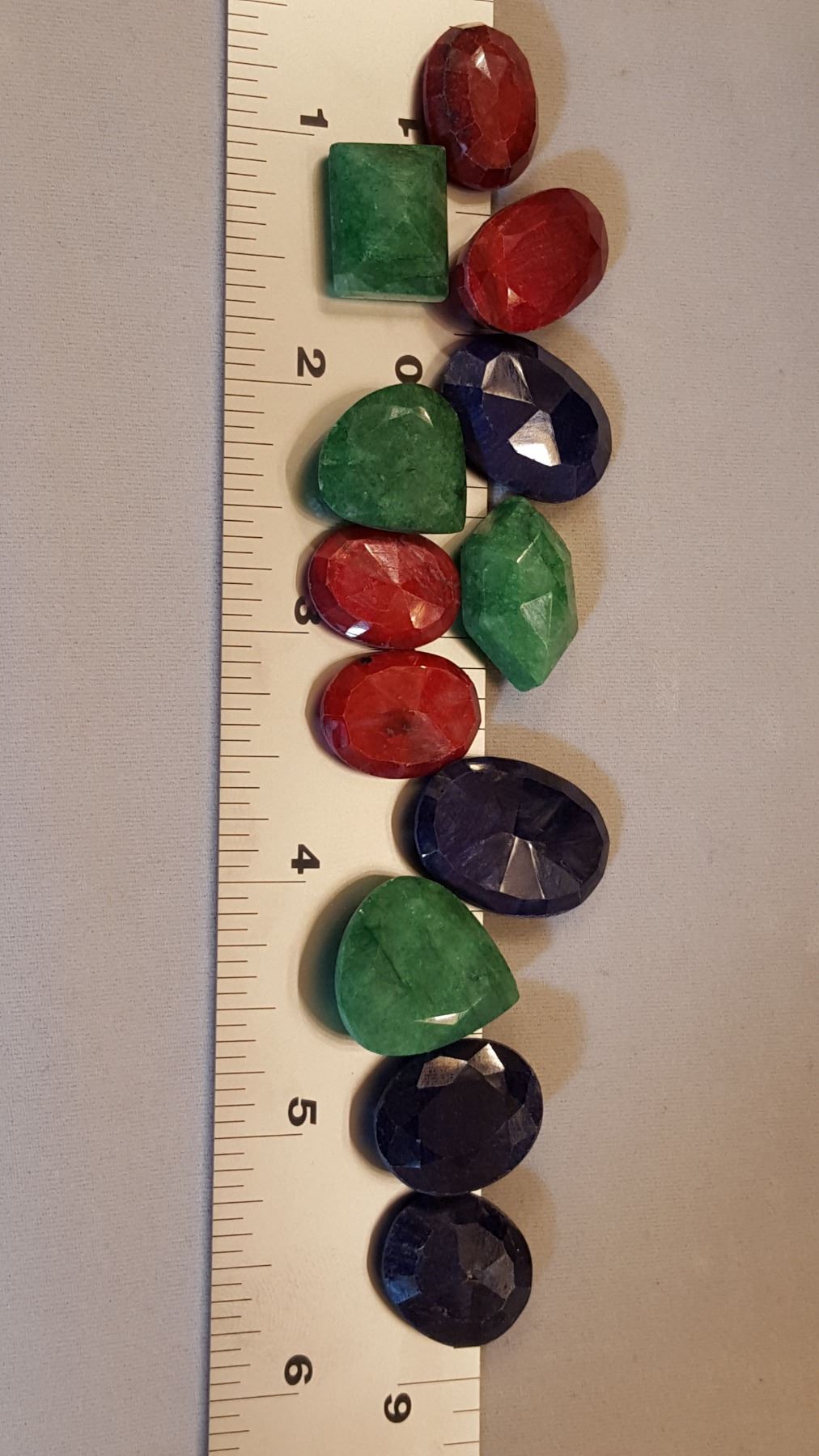 AWESOME HUGE 185 CTTW CERTIFIED PARCEL OF RUBIES, EMERALDS, SAPPHIRES . ALL STONES CUT AND FACETED DISPLAYING A VAST SELECTION OF DIFFERENT CUTS & COLORS.
