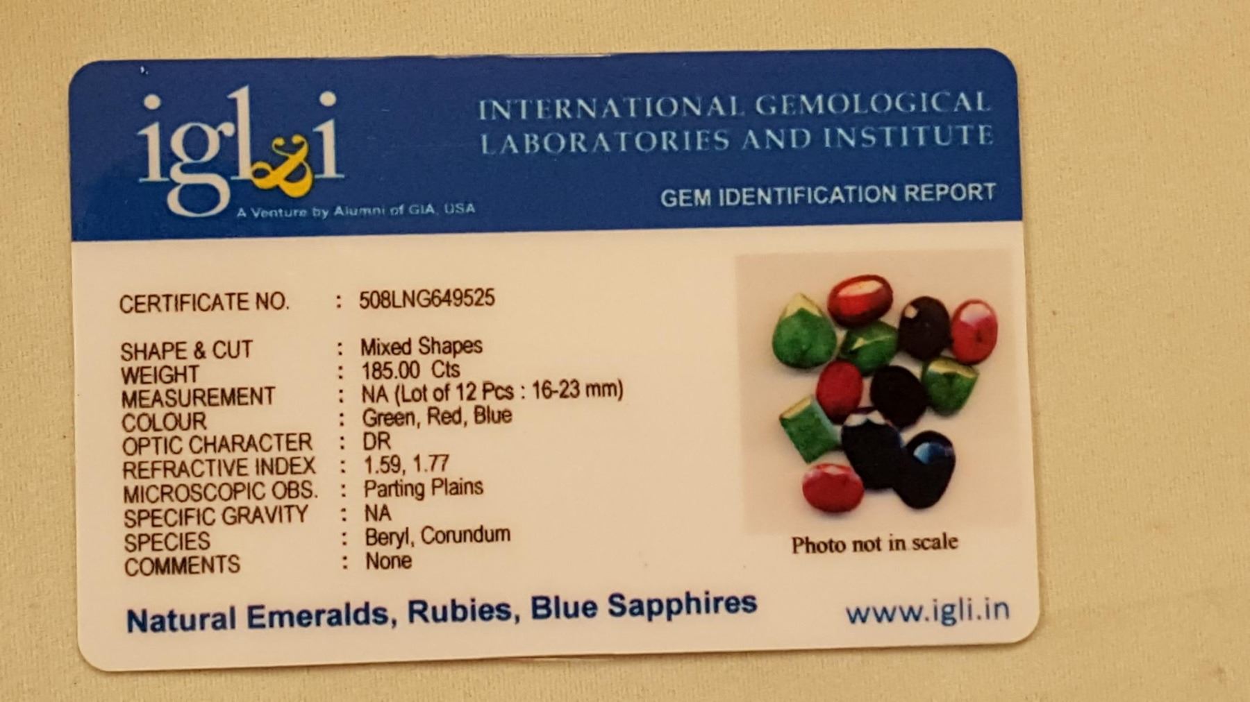 HUGE 185 CTTW CERTIFIED LOT RUBIES, EMERALDS,
