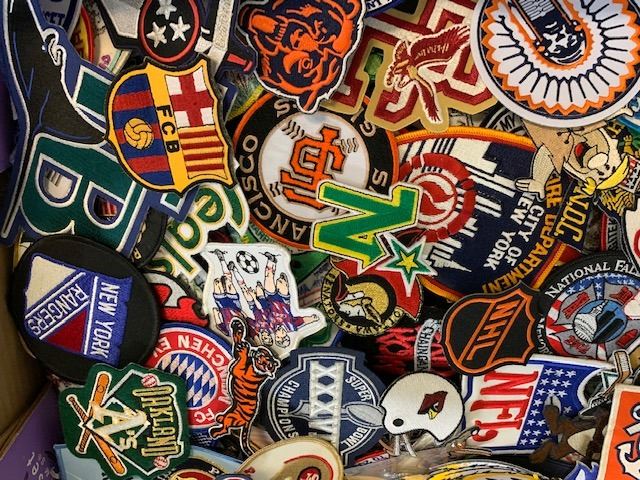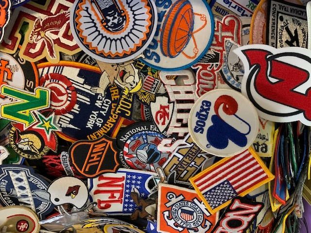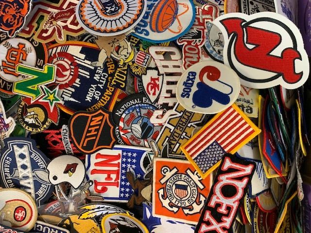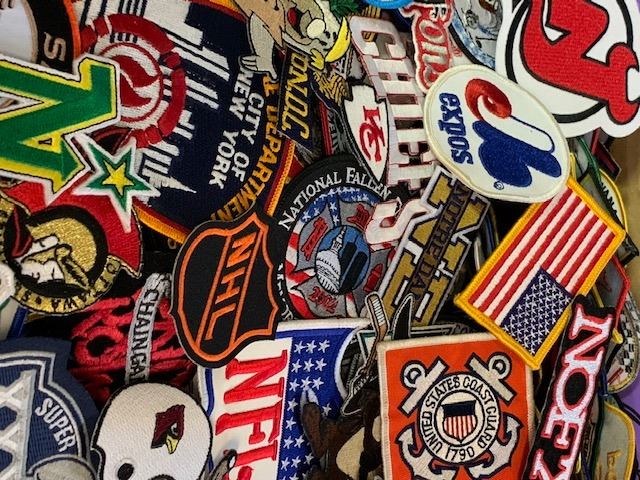 HUGE LOT OF 6-800 VARIOUS CATEGORY AND SIZE PATCHES, IRON AND SEW ON, RETAIL $2-25 EACH