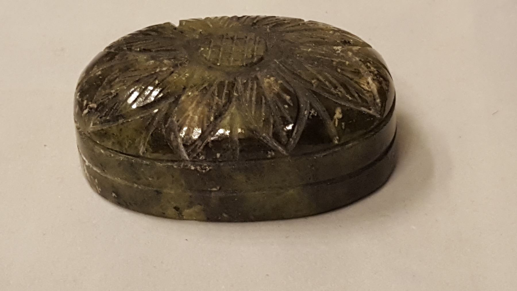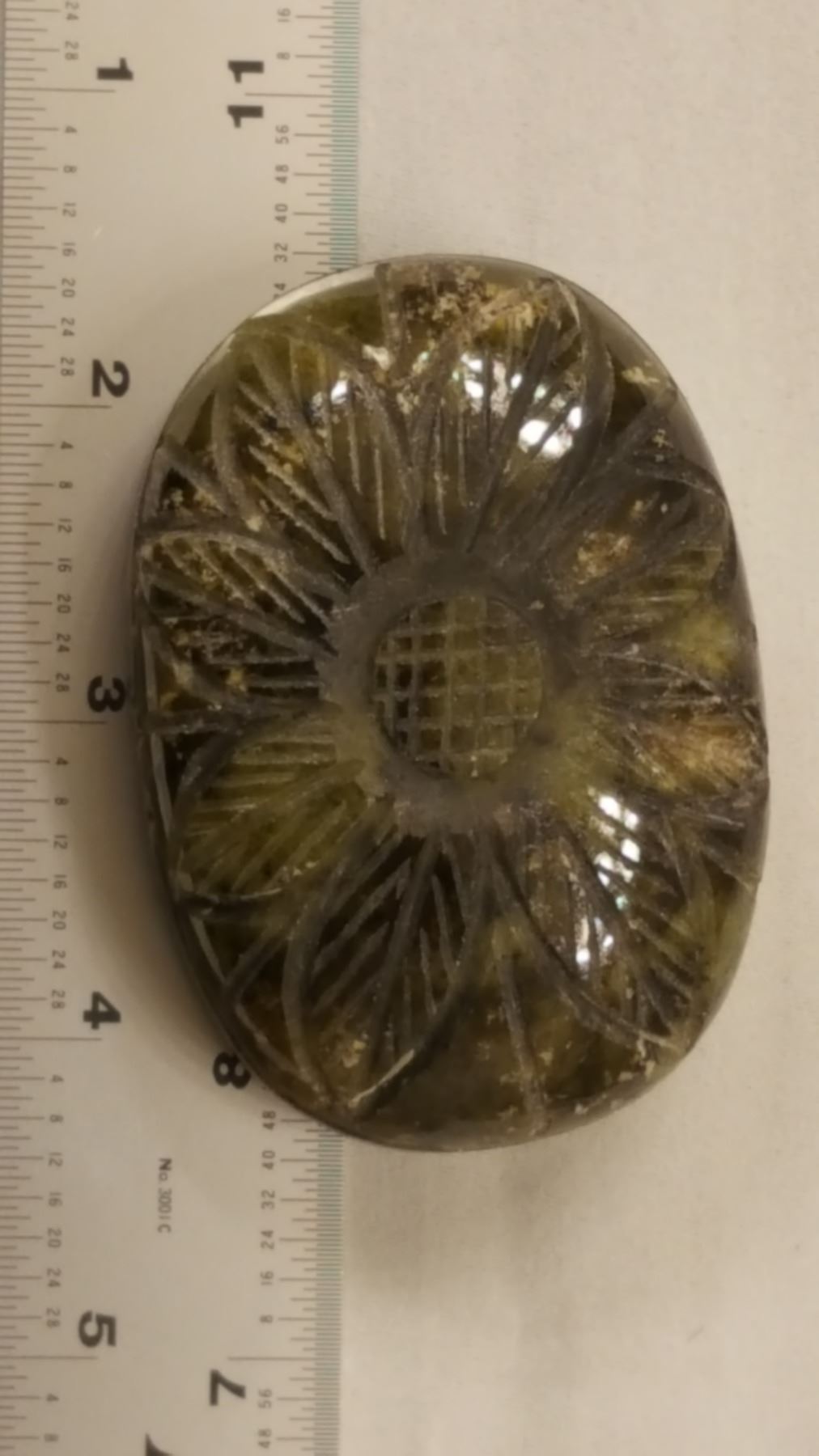 HUGE RARE CERTIFIED DEMANTOID HAND CARVED GARNET. 1115 CTTW OR 223.8 TOTAL GRAM WT.. THIS CABOCHON FLOWER CARVING MEASURES 70 x 48 x 27. NATURAL OPAQUE