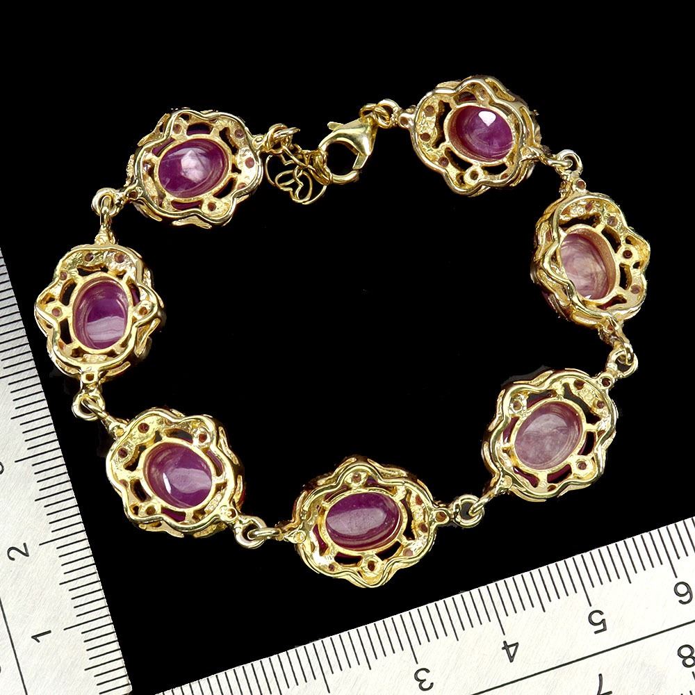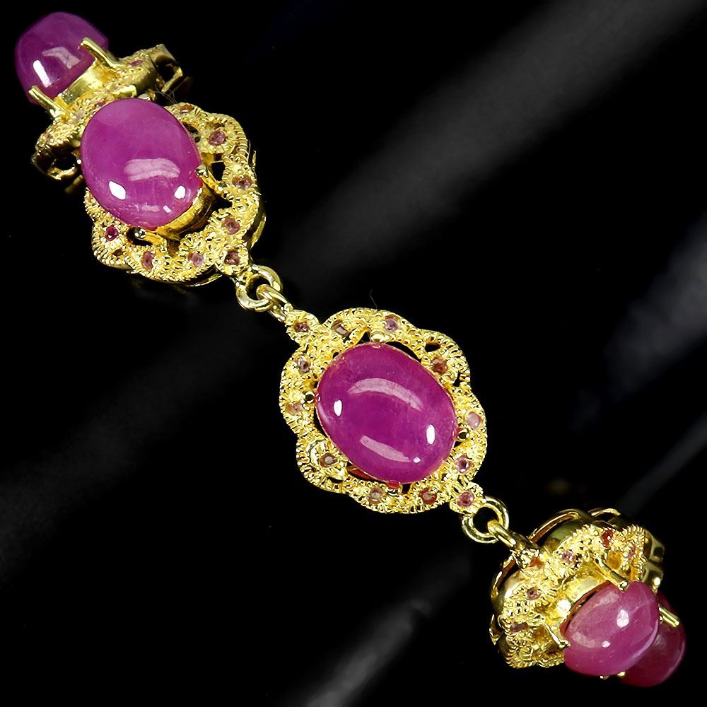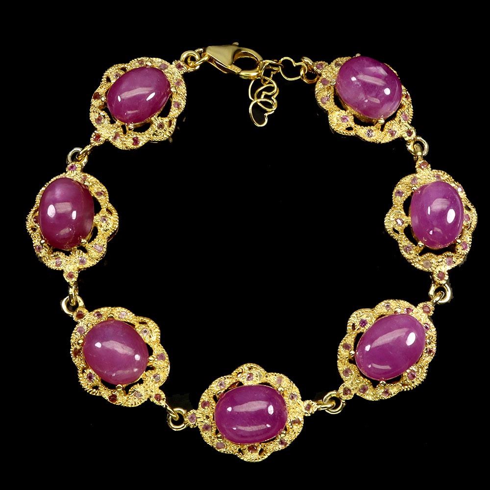 HUGE RUBY BRACELET IN 14K YELLOW PLATED GOLD OVER 925 STERLING SILVER -7.5 INCHES - APPRAISED REPLACEMENT VALUE