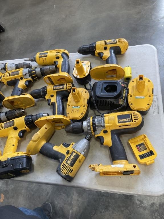 HUGE TOTE OF DEWALT XRP 18V DRILLS, CHARGERS, BATTERIES ETC