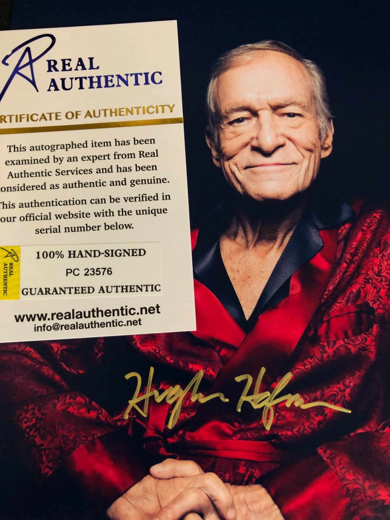 HUGH HEFNER SIGNED 8 X 10 ( REAL AUTHENTICS COA)