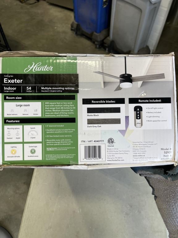 HUNTER EXETER INDOOR 54 INCH CEILING FAN