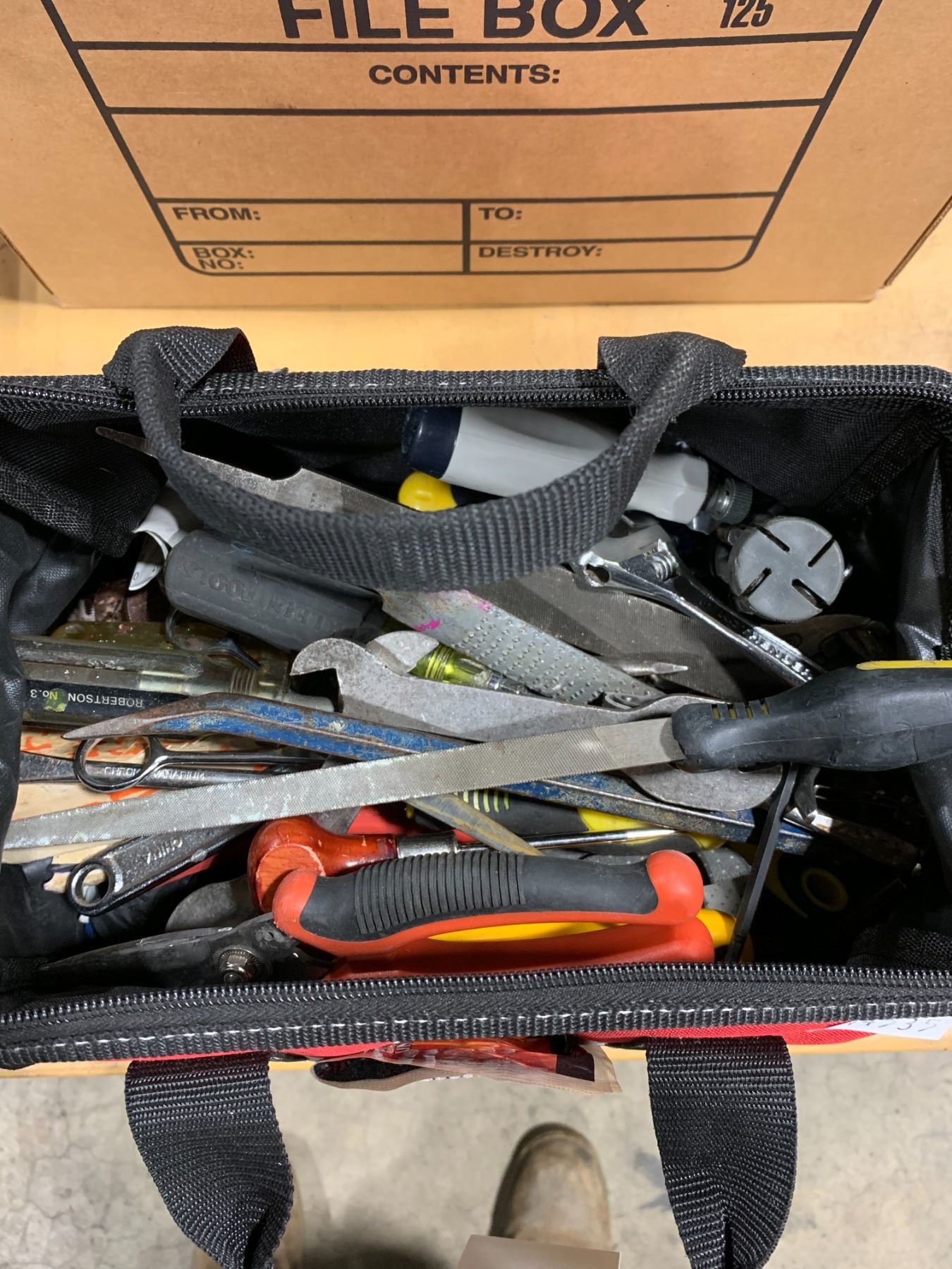 HUSKEY SOFT TRAVEL BAG FILLED WITH ASSORTED HAND TOOLS