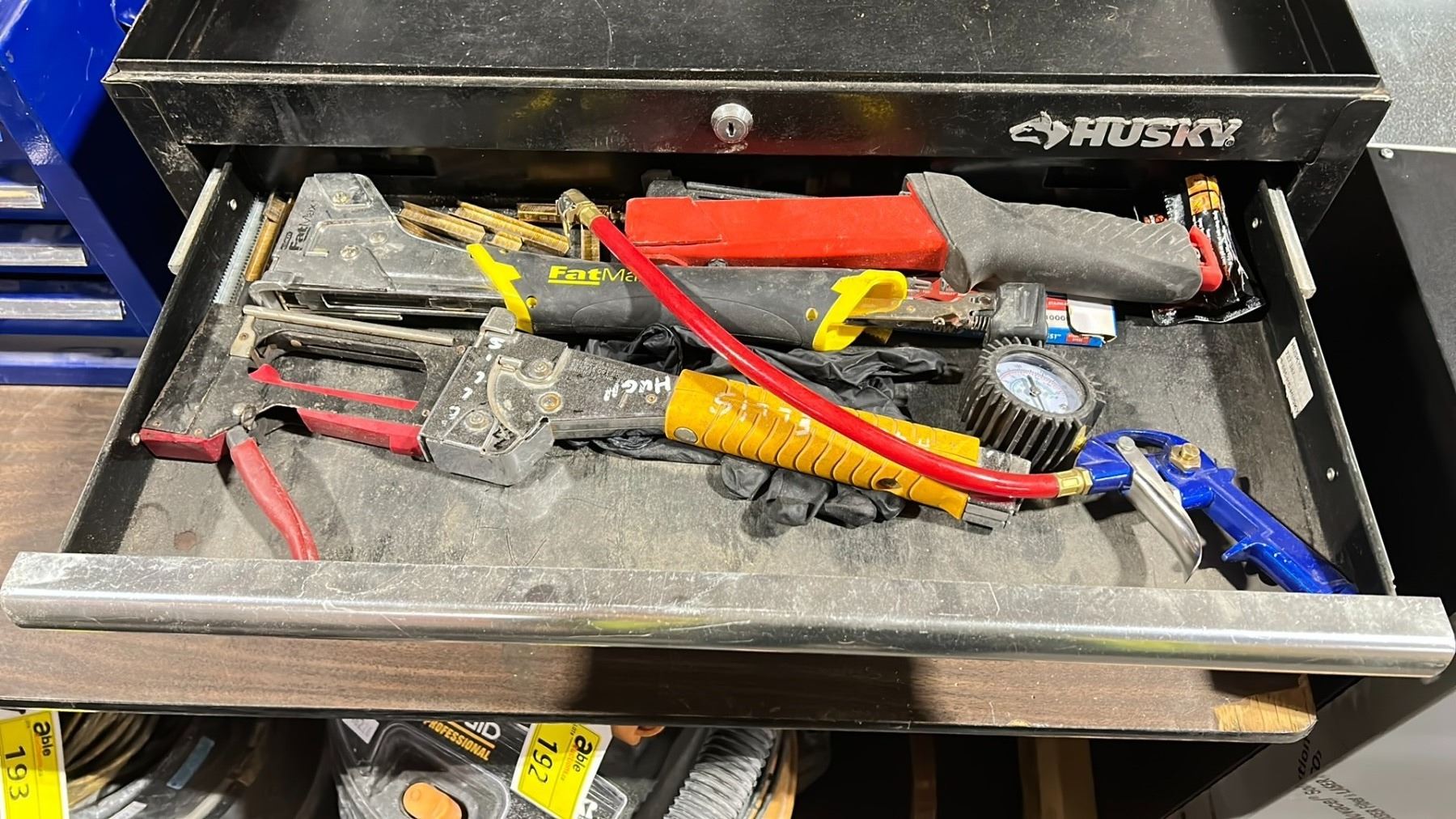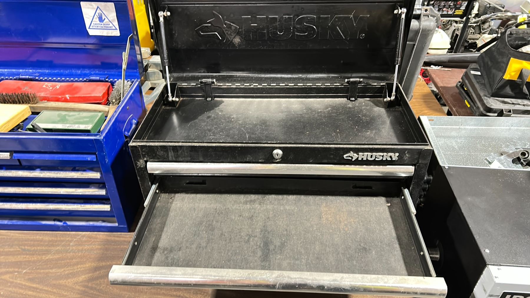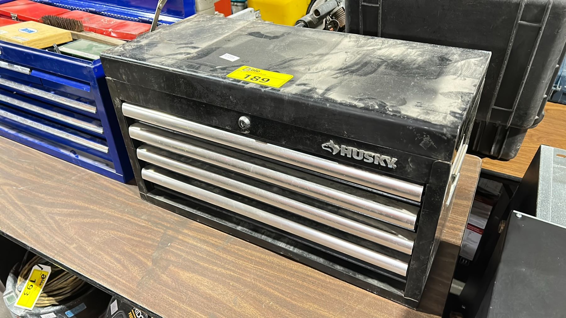 HUSKY BLACK 4 DRAWER TOP TOOL BOX WITH ASSORTED TOOL CONTENTS