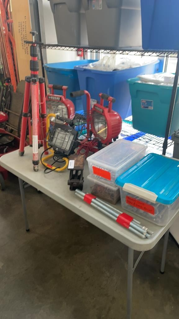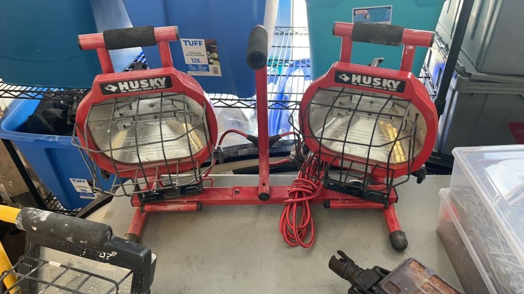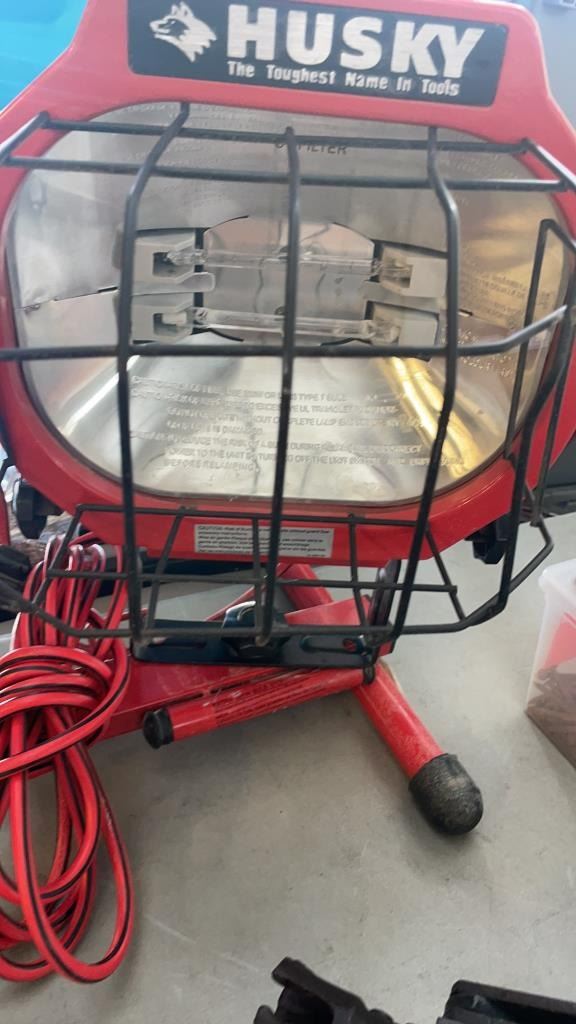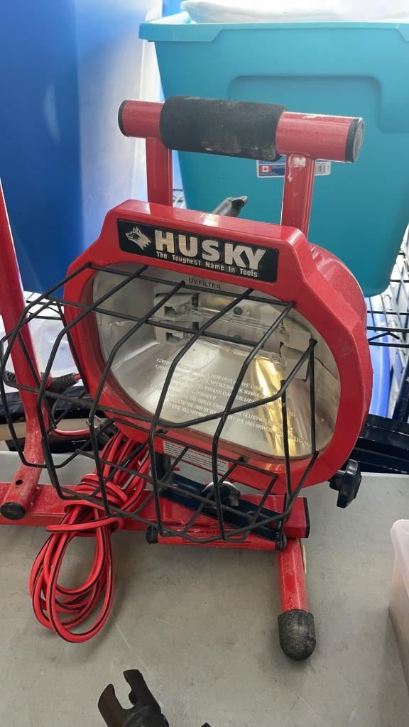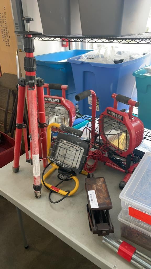 HUSKY DOUBLE WORK LIGHT, SINGLE WORK LIGHT WITH TRIPOD AND BIG BOY SCISSOR JACK