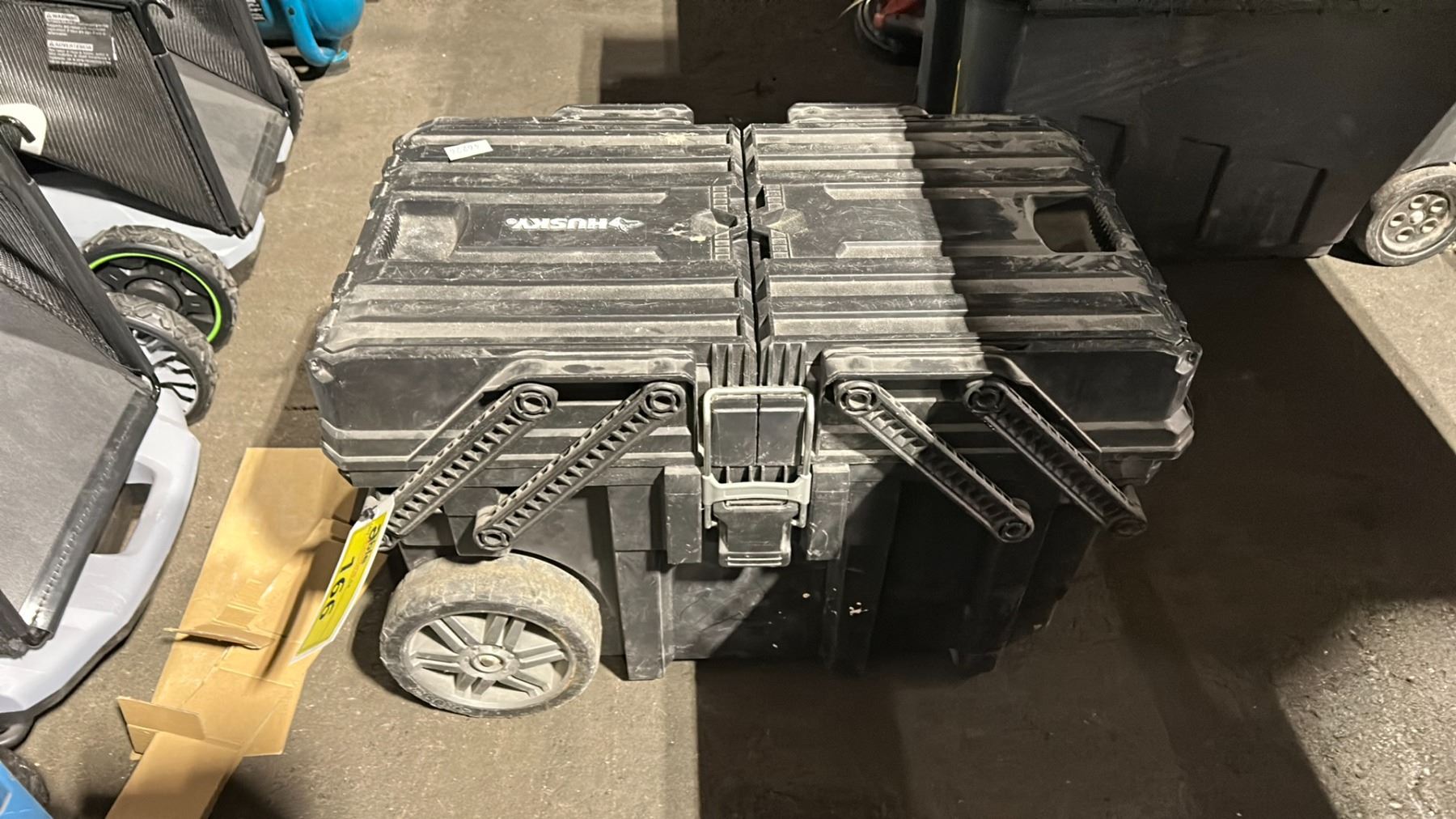 HUSKY MOBILE TOOL CHEST WITH EXTENDABLE HANDLEBAR (24"W 15"D 16"H) *CONTENTS INCLUDED*