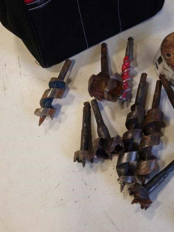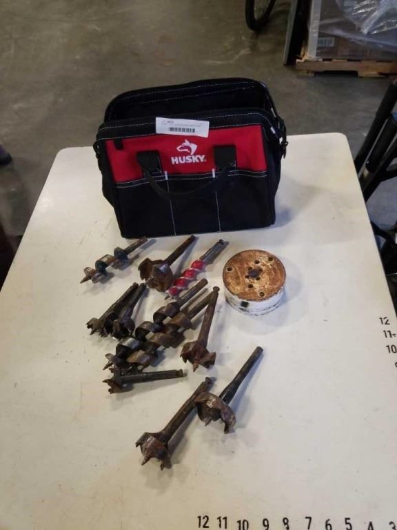 HUSKY TOOL BAG WITH DRILL BITS, HOLE BIT