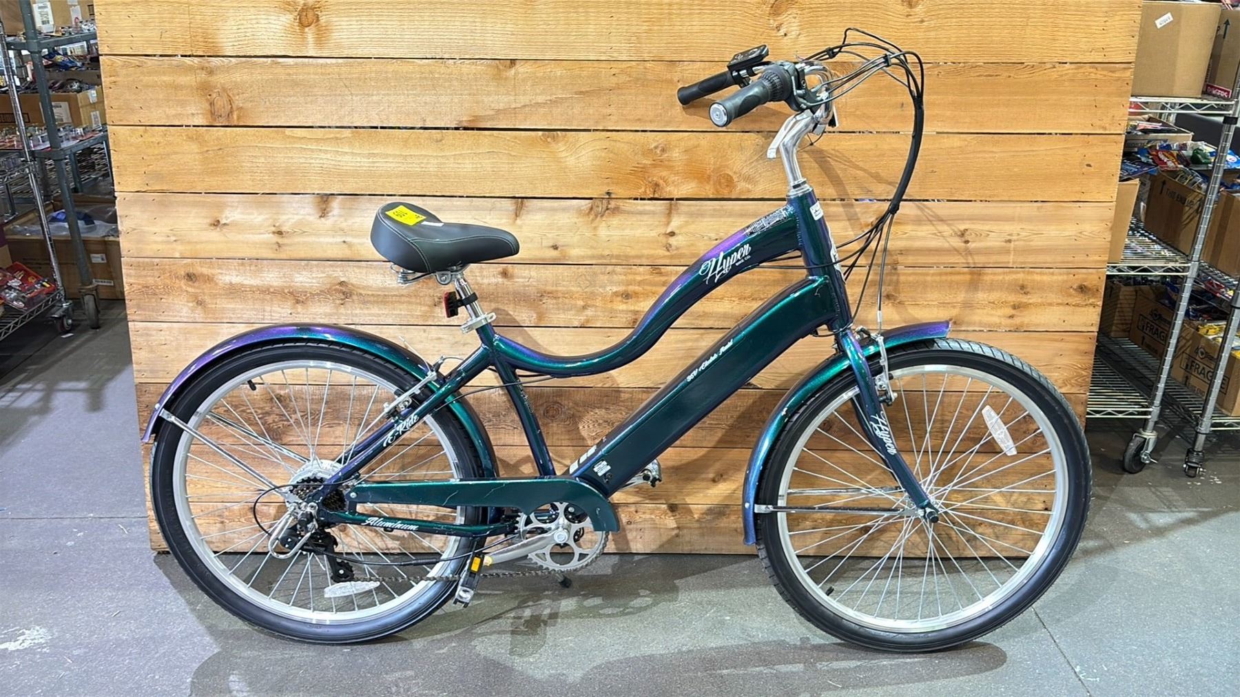 HYPER E-RIDE CITY 36V ELECTRIC ASSISTED E-BIKE WITH BATTERY (NO CHARGER, NO KEY, UNKNOWN WORKING CONDITION, CONTROL PANEL WIRING DETACHED)