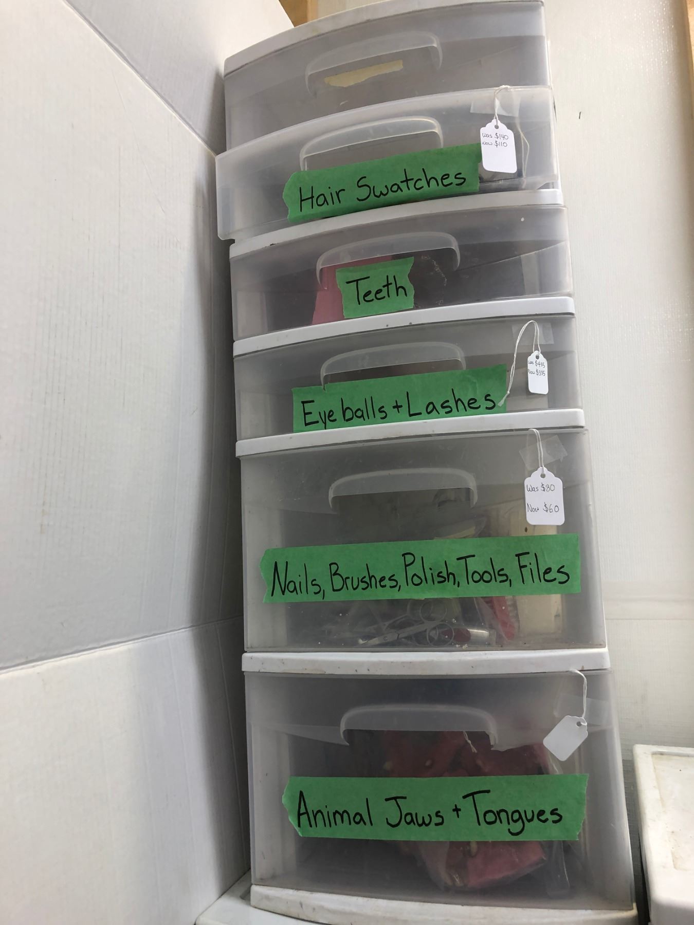 Hair Swatches, Teeth, Eye, lashes, Nails, Brushes, Polish, Tools, Files, Animal Jaws & Tongues